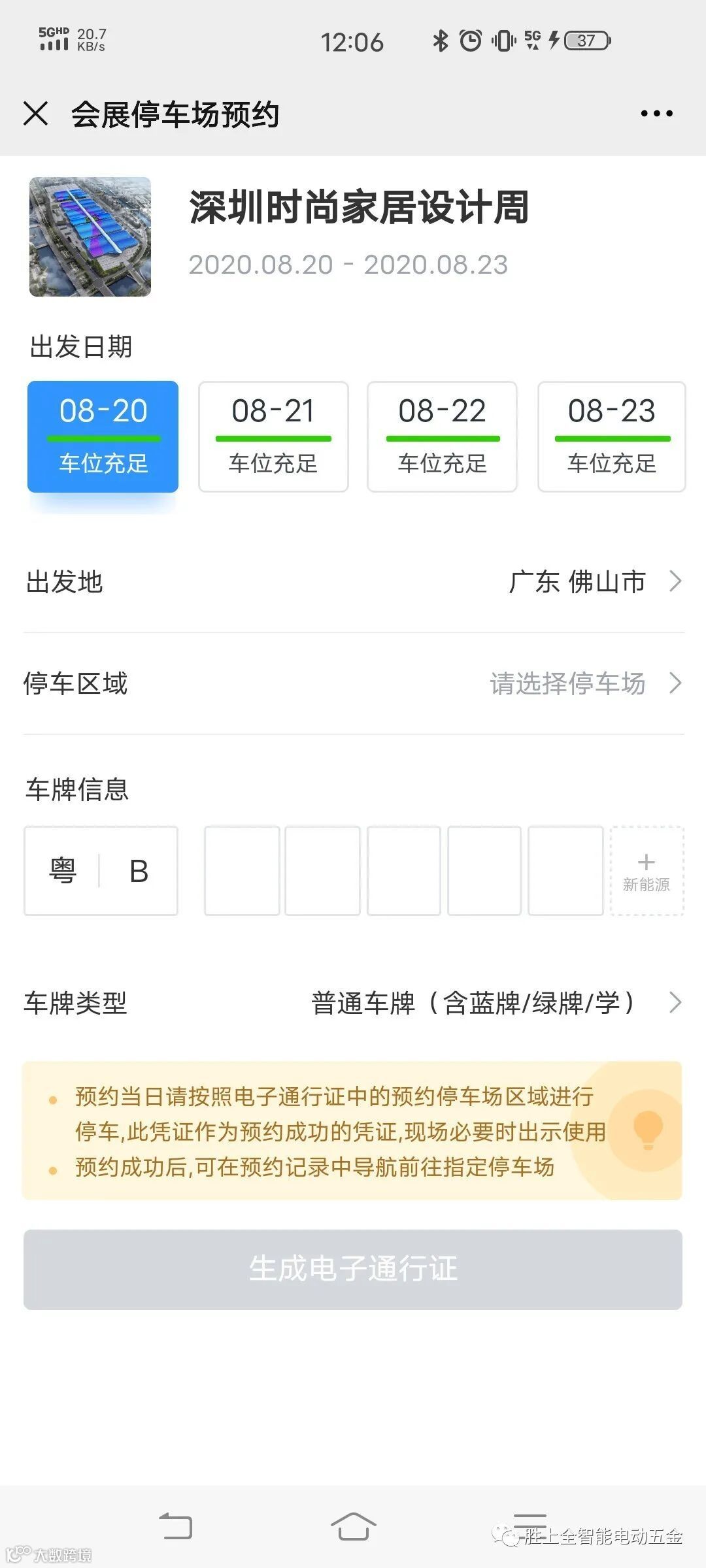 4、点击“深圳时尚家居设计周”进入预约通行页面。