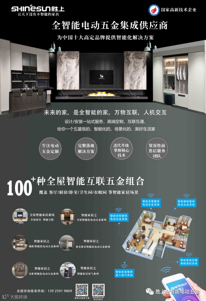 1、胜上电动,提供全屋智能电动五金的整体解决方案。产品互联互通,形成智能化,场景化,为全屋高端家具定制,提供一站式配套落地服务。