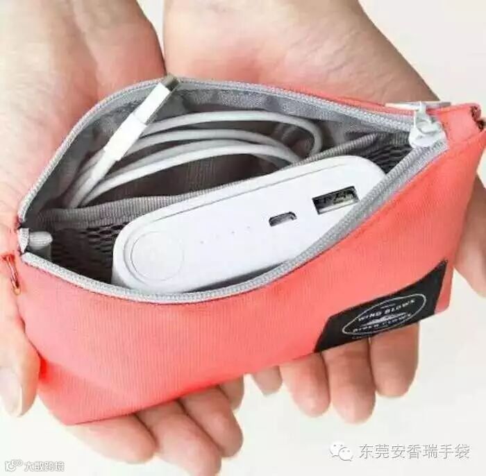 对于离开手机会死星人,简直不能忍受电量变红,必需充电线不离身。未免充电线耳机线一团乱麻纠结在包包里,可以找个小袋子单独收纳充电线和移动电源哦。