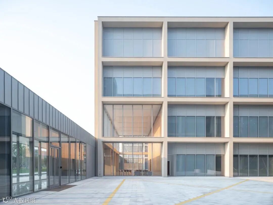 该项目的首要目标是为对功能有着不同需求的行政和研发人员创造相对独立的工作空间,同时又为员工和访客提供一个共享的公共空间。这个主要命题将复杂的功能分成一系列区块:一座高层办公楼,四座低层实验室,以及单层的展示和多功能厅。这种分隔因引入一个200米长的门廊而得到平衡,它贯穿整个基地,链接所有单体建筑。门廊被用作总部大楼和各个独立建筑的入口。它向西侧的公共公园敞开,创造了和景观的强有力联系。在室内,它向各个独立体量延伸,形成了门厅和休息区。这条门廊不仅扮演交通空间的角色,也将人们汇聚在一个公共的连续空间内,远眺室外的大公园。