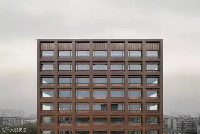 建筑由钢筋混凝土框架结构支撑,长方形的柱子沿建筑长向布置,强调了修长的形体。结构外表面包裹大面积铜,以箱体组合的形式反映建筑的结构,体现了结构和表皮的完美融合。窗的周围则由较小的铜元素包裹,这些较小元素由手工直立锁边技术制造,呈现了表皮设计工整和施工的精度。外立面丰富的质感建立了建筑优雅而不失活力的形象。
