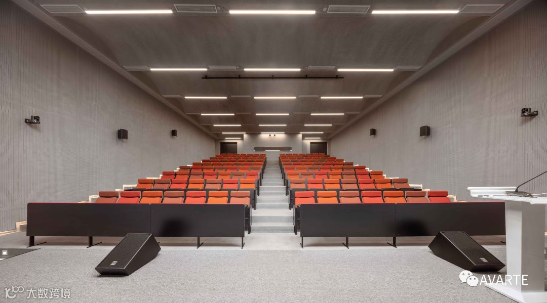 歌剧院的观众席全部由胡桃木皮饰面,拥有1200个座位。内部空间为马蹄形,设有三层楼座。通过这种欧洲经典的布局,观众席反映了观众和表演者之间社区型的、充满意义的联系,他们共同体验艺术表演,这是与当今数字环境相反的简单而真实的现场活动。黑匣子剧院内衬乌木皮饰面,舞台灵活且可移动,因此可适应各种当代表演场景。此外,黑匣子剧院还可以向室外空间敞开——允许在园区内举行露天音乐会。
