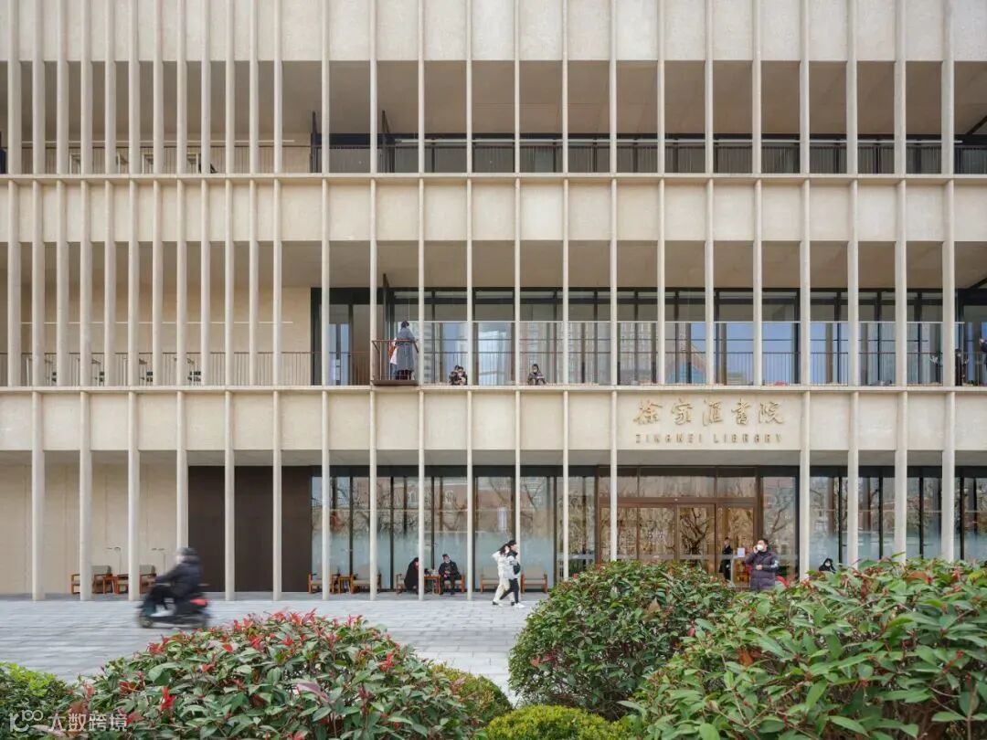 徐家汇书院已于2023年1月1日正式向公众开放。这座新建的书院位于上海西南的一个城市广场中,毗邻保存完好的圣依纳爵堂,它代表了耶稣会传教士于20世纪初期在徐家汇建造的建筑。书院的立面由细长的翅片构成,从地面垂直延伸到屋顶。翅片包围了整个建筑,为整个体量提供了抽象和统一的观感。对当地传统建筑材料的研究让设计团队选择了混合石材骨料的预制混凝土来建造外表面。中性的米白色幕墙烘托了圣依纳爵堂采用的红砖。一楼的柱廊和二、三楼的凉廊为人们提供了观赏广场和大教堂景色的场所。