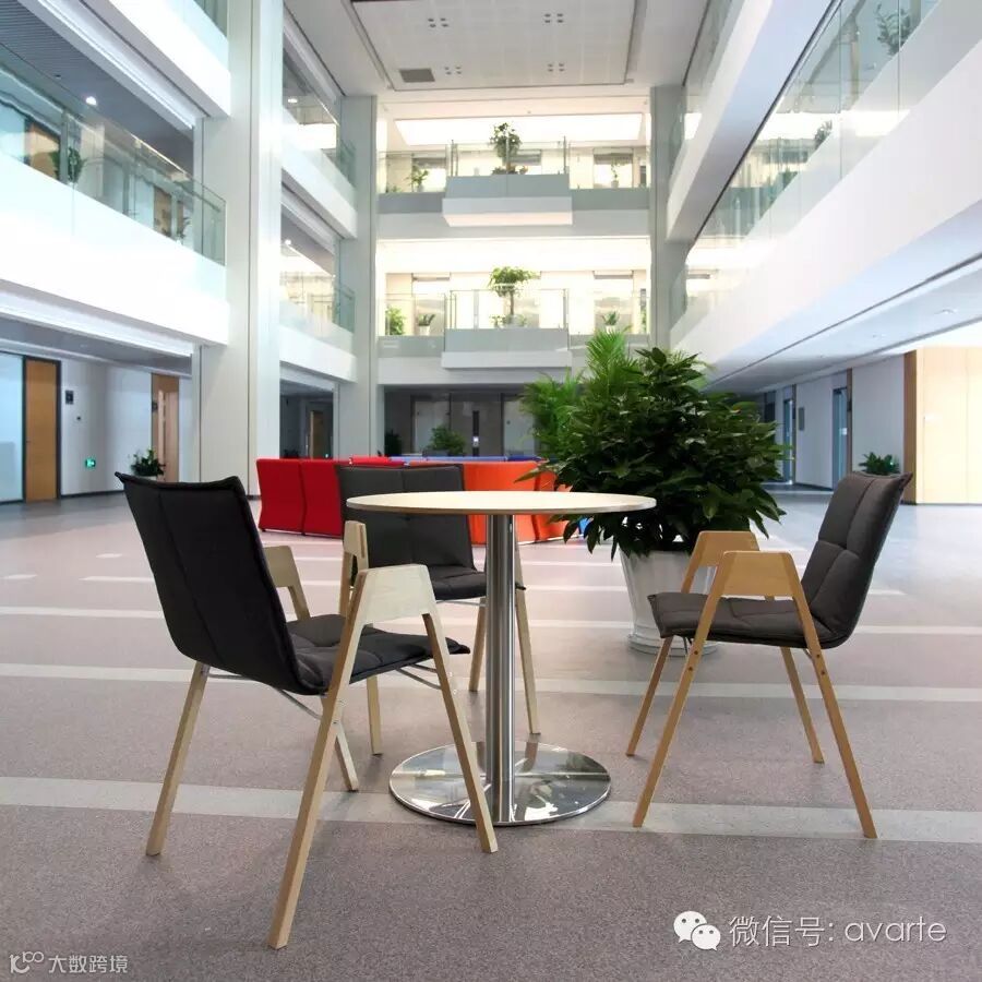 奥拉沙发,善于营造开放空间中的私密感,泰托思桌搭配赛可思椅,形成小型洽谈区。