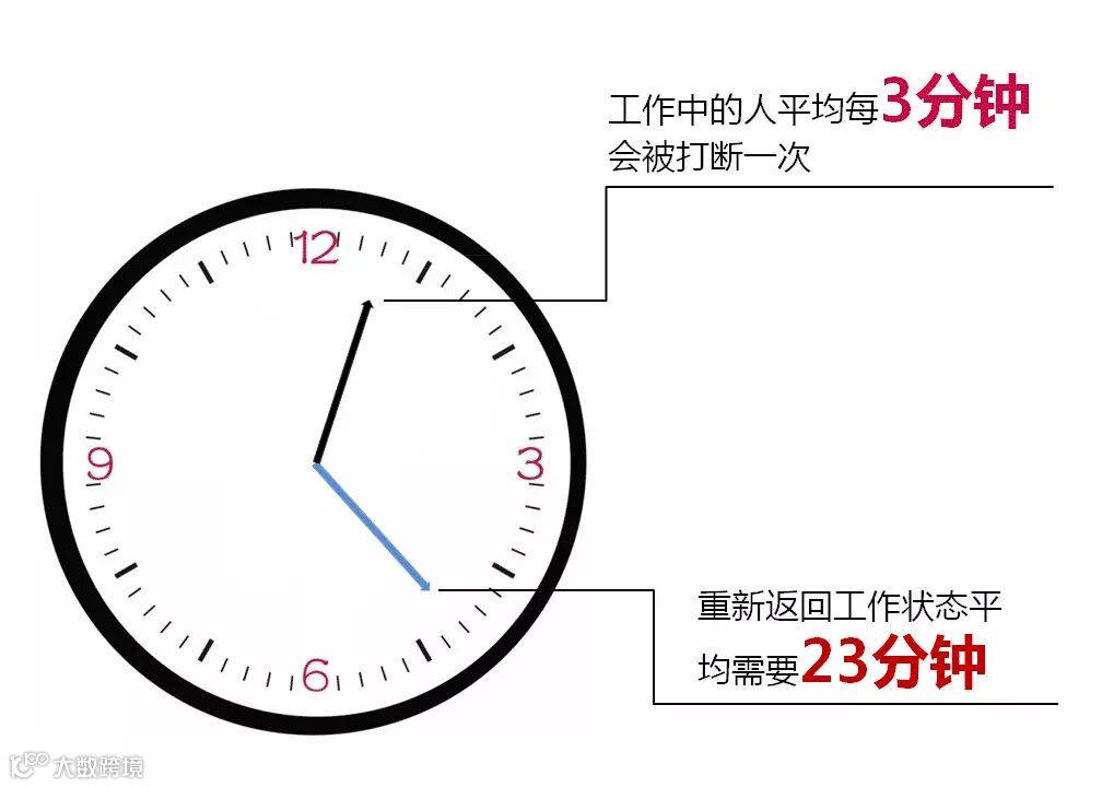 下图为加州大学对人们在工作中受到打扰的频率以及重新投入工作状态需要的时间做的一项调查。