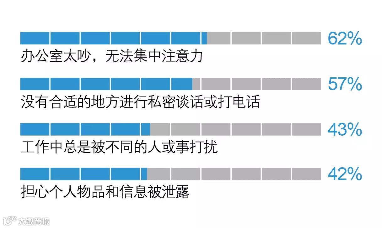 美国一家知名办公家具制造商在中国做了一份有关“办公场所私密性”的调研,得出主要的办公室私密性问题有: