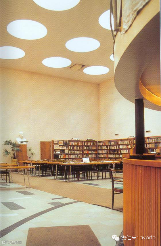 1927年,阿尔托在维堡图书馆的招标中获胜。1933年,他开始了设计,但是直到1934年他才真正开始了图书馆的建设。在第一稿中,阿尔托采用古典主义的清晰线条,但是多年后在该项目实施时,又融入了对建筑的新看法,并使之成为他的代表作。该建筑包括两个扩大了的空间,融在一起创造出一个常规功能区,包括入口、楼梯(透过前玻璃窗能够看到)和通往观众席的前庭。此外,还有一些阅览室和儿童图书馆,这是阿尔托在设计时特别注意的细节。阅读区的照明灯呈圆锥形天窗形状,可以挡住部分光线,使读者不会感到晃眼。