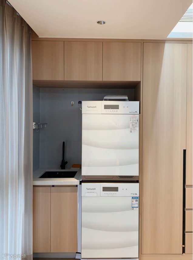 原木色餐边柜+嵌入式电器,