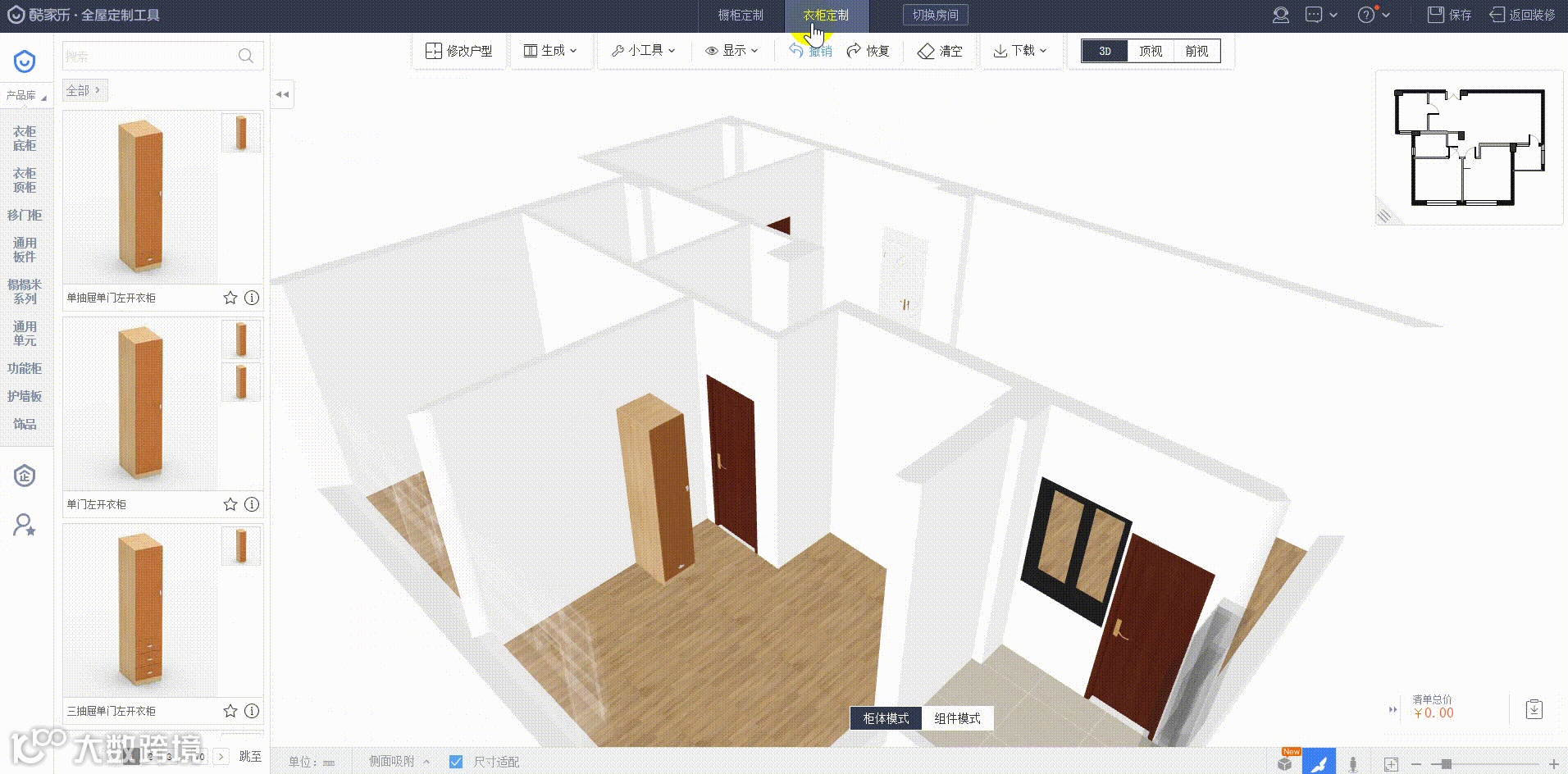 如果要设计定制橱柜衣柜,您可以进入“工具箱”中的全屋定制工具,如下图。