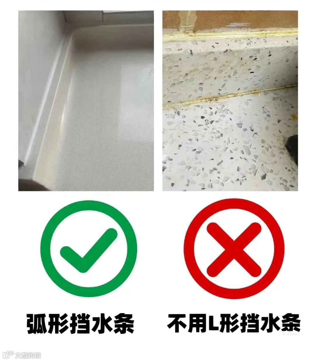 不用L形挡水条,选用弧形挡水条无卫生死角,做卫生更干净,不留卫生死角。