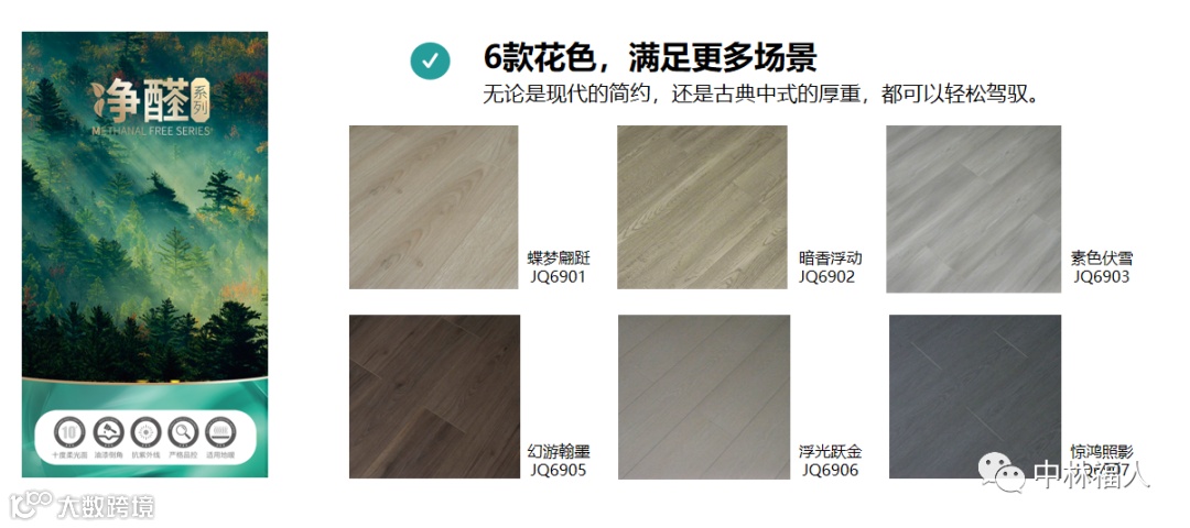 除了净醛系列,不怕水火的功能性产品晶木系列、融入莫兰迪色系的星耀系列、以及升级花色的福博士系列,每一款产品都各具特色。