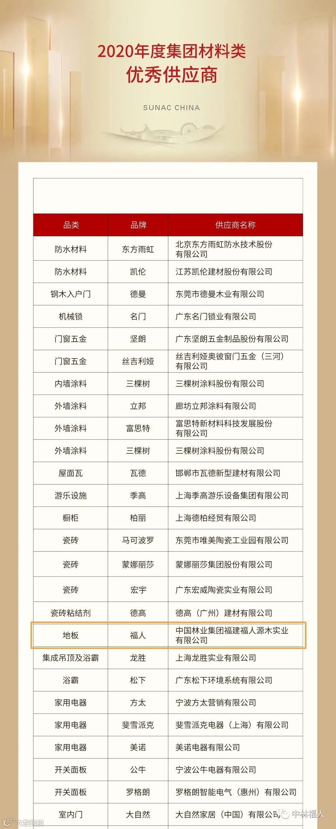 融创地产集团对外发布2020年度优秀供应商名录