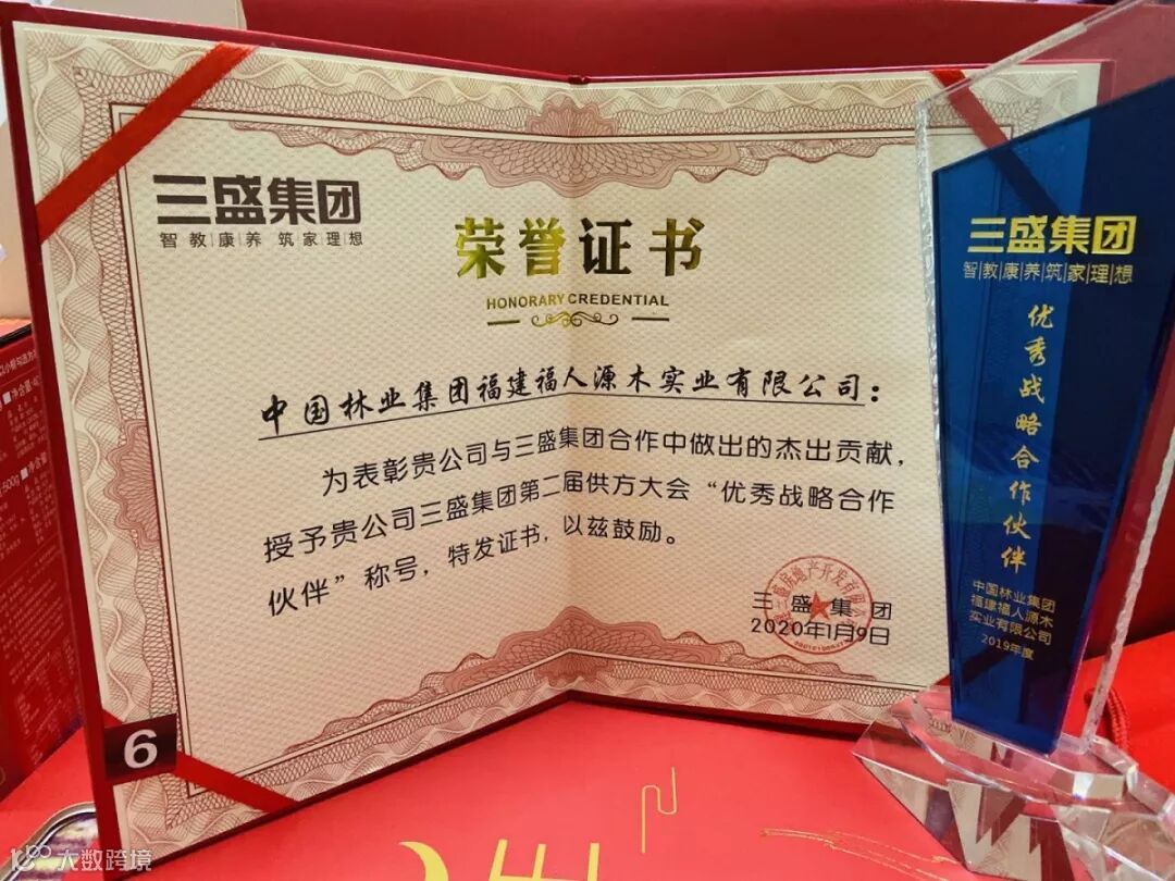 生参加三盛集团2019年度合作伙伴答谢会,福人地板荣获“优秀战略合作伙伴”。