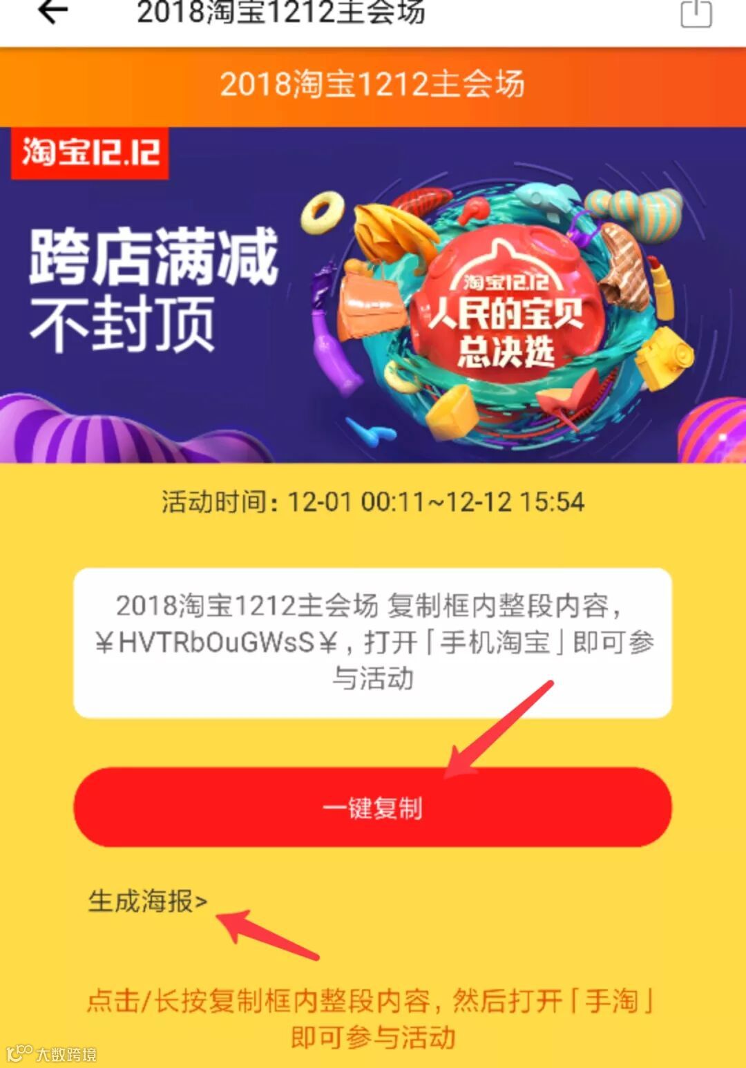 您的顾客用您的口令打开手机淘宝即可到达双12主会场,在主会场内领取红包下单购物,您就可以获得佣金了。