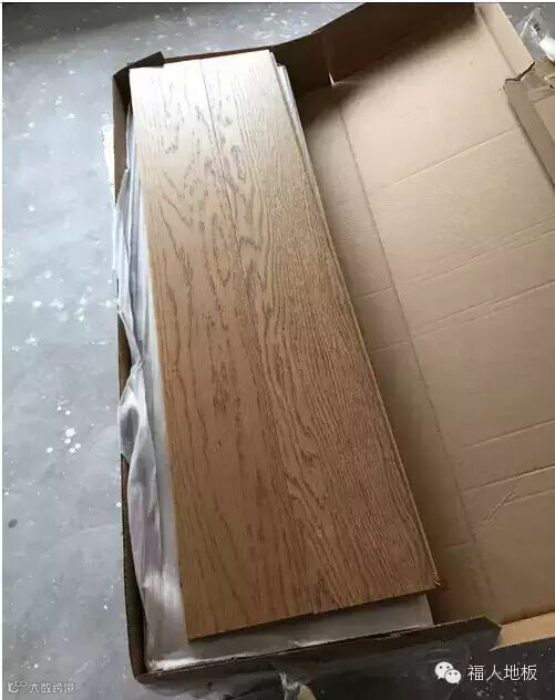 打开地板包装,开始铺装地板。如果业主在场的话,最好自己挑选地板花纹,把花纹不太漂亮或是有明显结疤的板块放在有家具的位置,这样就可以遮挡起来。