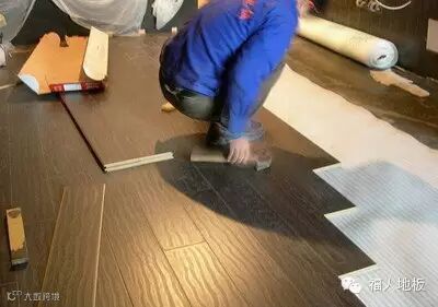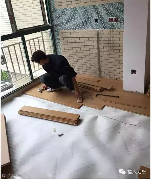 地板一般从靠墙一侧的角落开始铺装。铺地板就像搭积木一样,它有凹槽式的启口,需要两块之间用启口连接在一起,千万不可以硬塞硬拆。一旦用力过猛把启口损坏,地板就无法紧密连接,这块地板也算报废了。