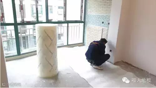 地面都清扫干净后,要在地面铺上防潮膜,一是为了防潮,也是为了避震和减轻踩踏声。防潮膜必须完全覆盖住所有铺设的地面,接缝的地方要用胶纸封住。等所有的防潮膜都铺设完成后才可以开始铺装地板。