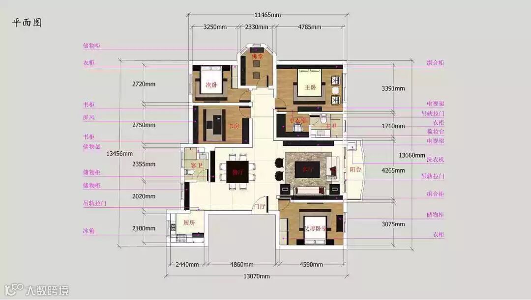 家具是空间环境的重要组成部分,家具的布局、款式、颜色、材质等要与房间整体风格、色彩相协调。