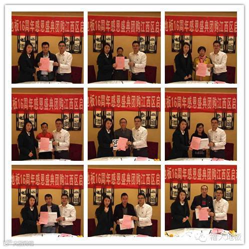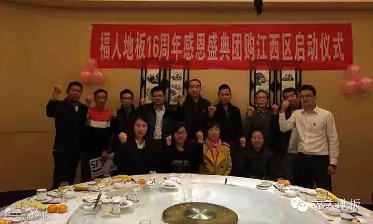 2015年11月12日,福人地板江西区域感恩盛典启动大会在革命老区江西隆重举行。江西大区经理刘伟、江西区域督导黄雯琪以及鹰潭福人蔡总,宜春福人黄总,安义福人喻姐,芦溪福人林总,南昌福人曹总,新余福人廖总,上饶福人徐总,修水福人余总,九江福人金总出席此次会议,打响了江西区域感恩盛典活动第一枪。