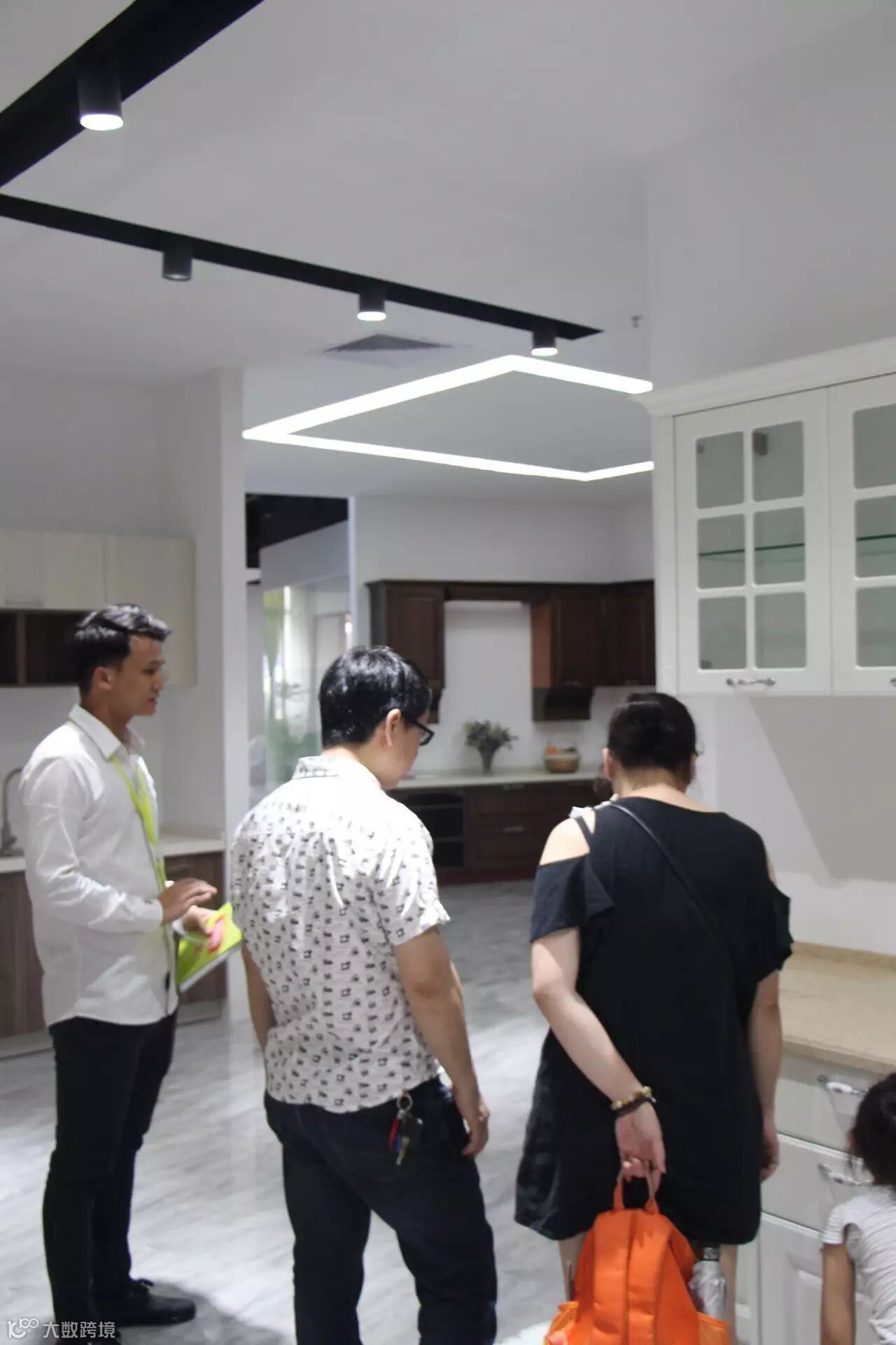 ▲紧跟着大家来到悦饰界展厅了解369名品主材包 橱柜区