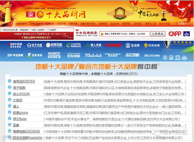 2015年中国木地板十大品牌评选活动于2015年5月7日完美落幕,热烈祝贺福人地板再次荣获“2015年中国地板十大品牌”称号。荣登“2015年度中国地板十大品牌”的优秀企业有福人地板、肯帝亚地板、扬子地板、安心地板、圣象地板等。