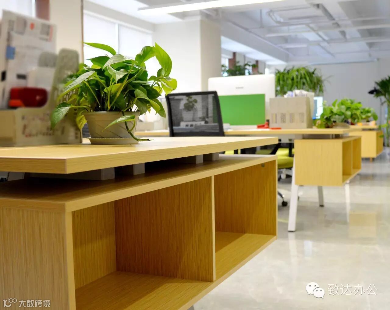 公共空间大胆用色,运用绿色屏风、黄色的桌面板很好的平衡了空间的温暖与时尚的气质!