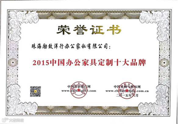 近日,励致家私在第七届中国办公家具招标采购评价推介活动中,荣获“2015中国办公家具十大顶级品牌”和“2015中国办公家具定制十大品牌”两项大奖,成为业界的关注焦点,彰显珠海励致洋行雄厚实力,续写中国办公家具的新篇章。