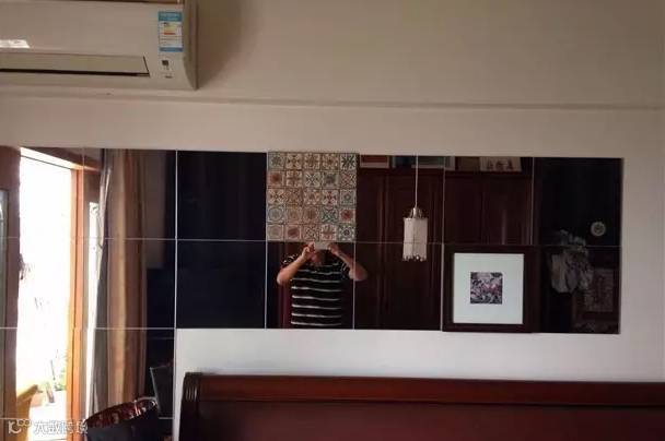 卧室中只装镜子好像又太单调了,于是我买了一些仿古花砖,用双面胶也能黏很牢。