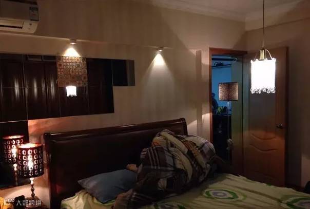 床头那两盏感应灯,因为是一边装修一边住,经常要钻墙,弄的一堆灰,所以旧床单还是继续用着。