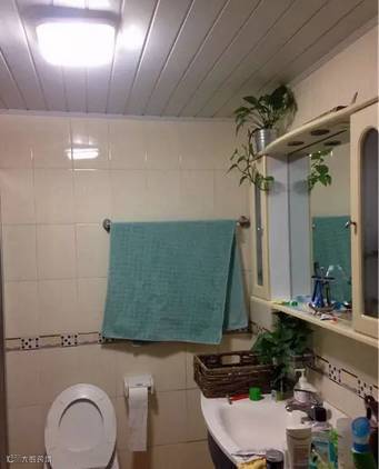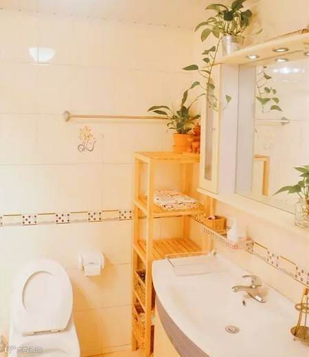 厕所这时是这样的,我觉得最便宜又好看的软装方式就是摆一堆植物,都是搬家时一起搬过来的。
