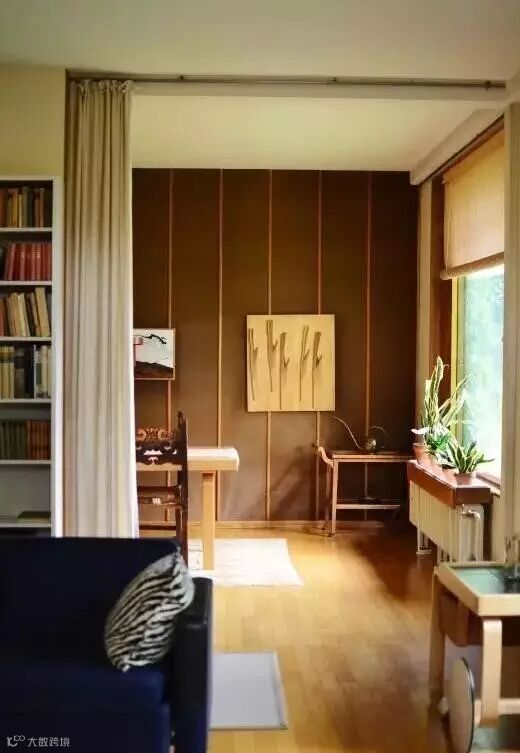 空间内的分割和转换保存了良好的私密性,入口处的草编墙面冬暖夏凉,隔音效果好,朴素又经典。