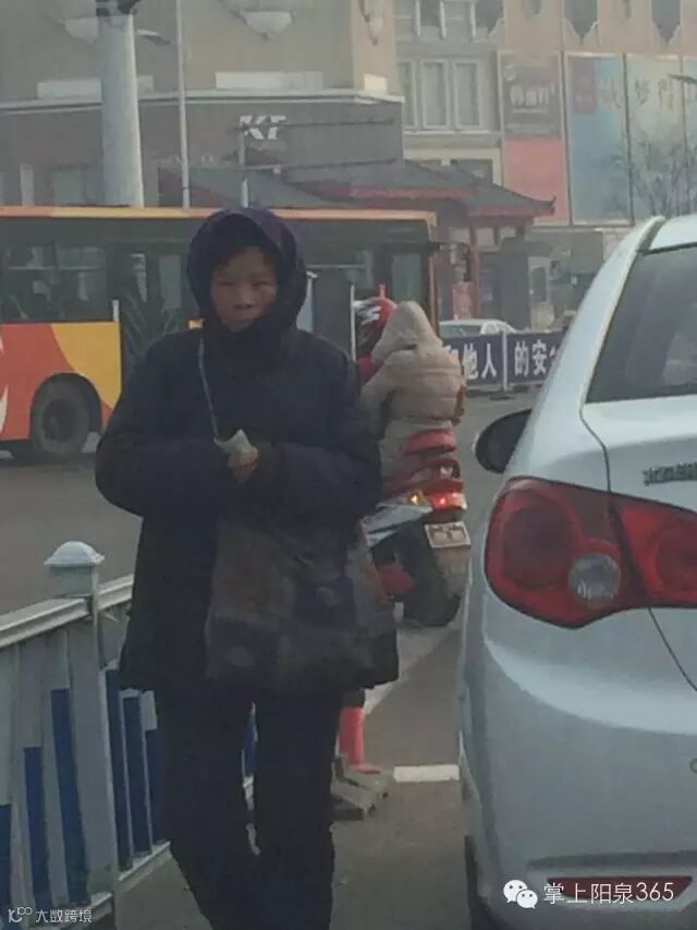 小编也经常路过滨河见到过此人(特征是蒙着头巾),不仅是交汇路口向等红绿灯的车辆要钱,还经常在华盛桥上,沃尔玛门前,新天地门前,蹲点要钱。虽说早已见怪不怪了(前年去年都见过),但这种常年蹲点乞讨要钱的行为,实在让人很不舒服,又无可奈何?!(也算是阳泉的一个特色了)