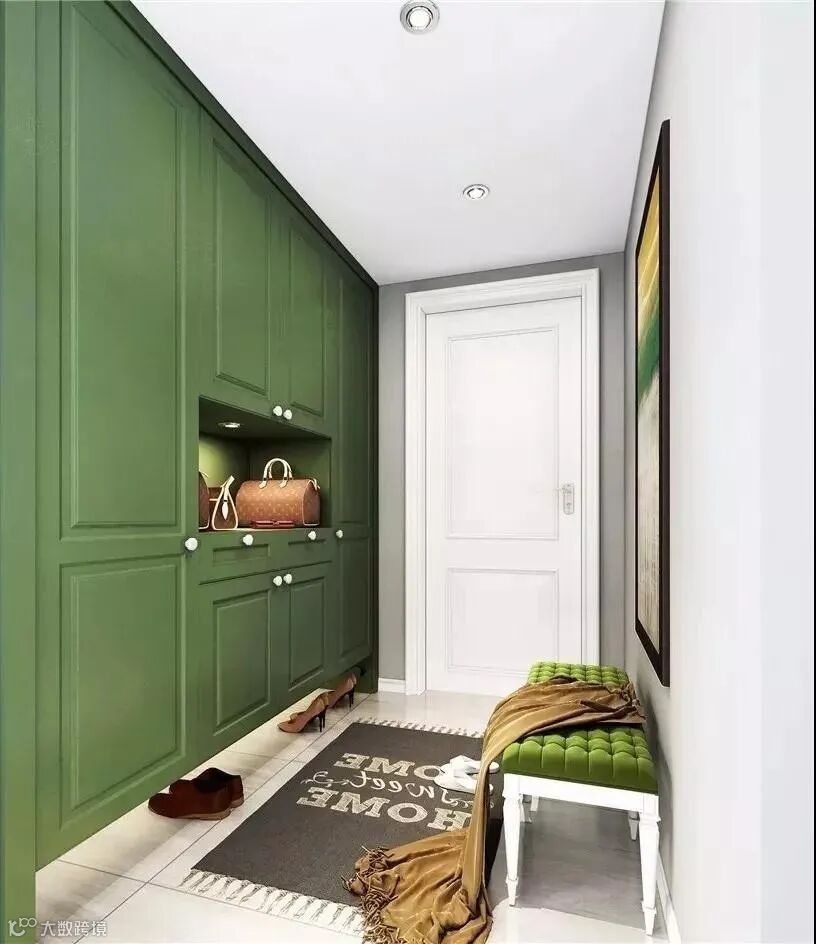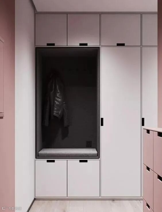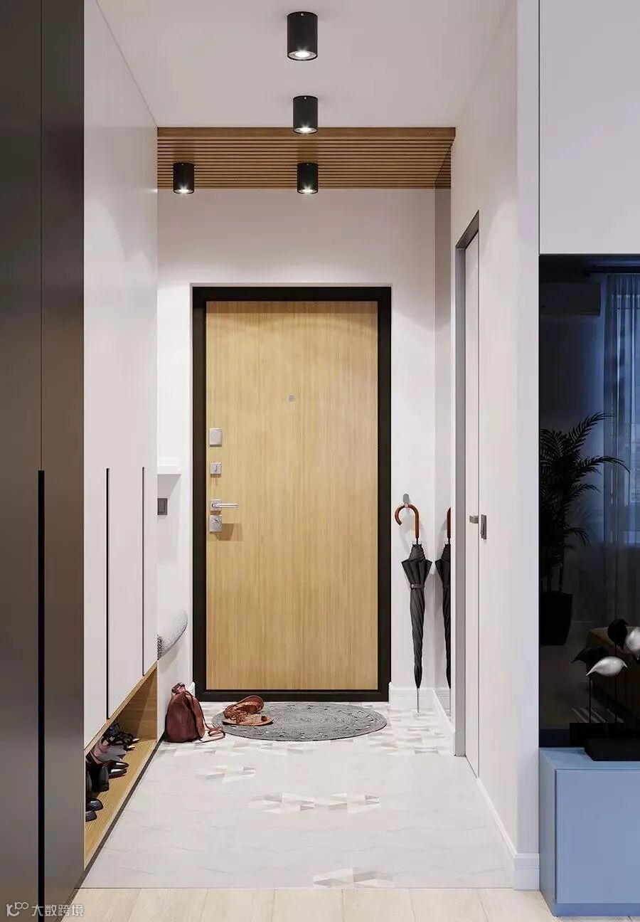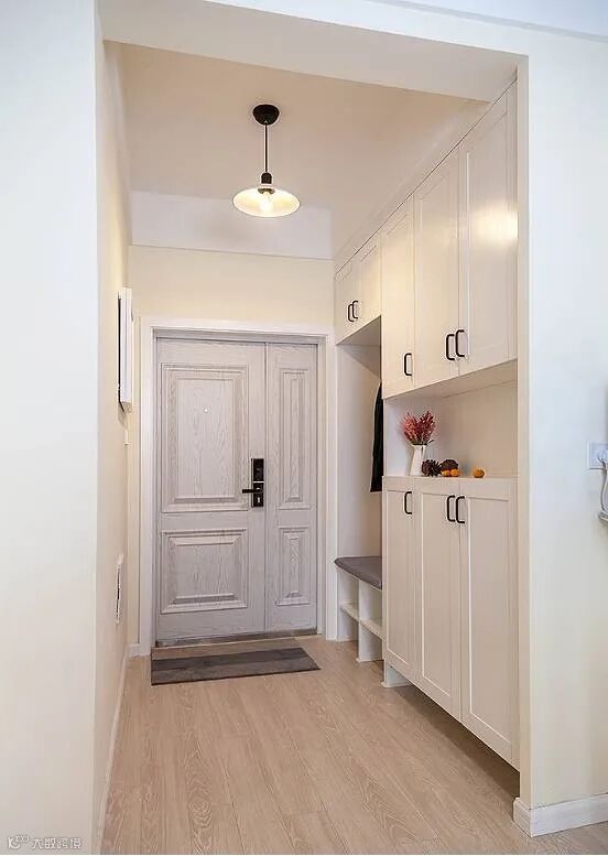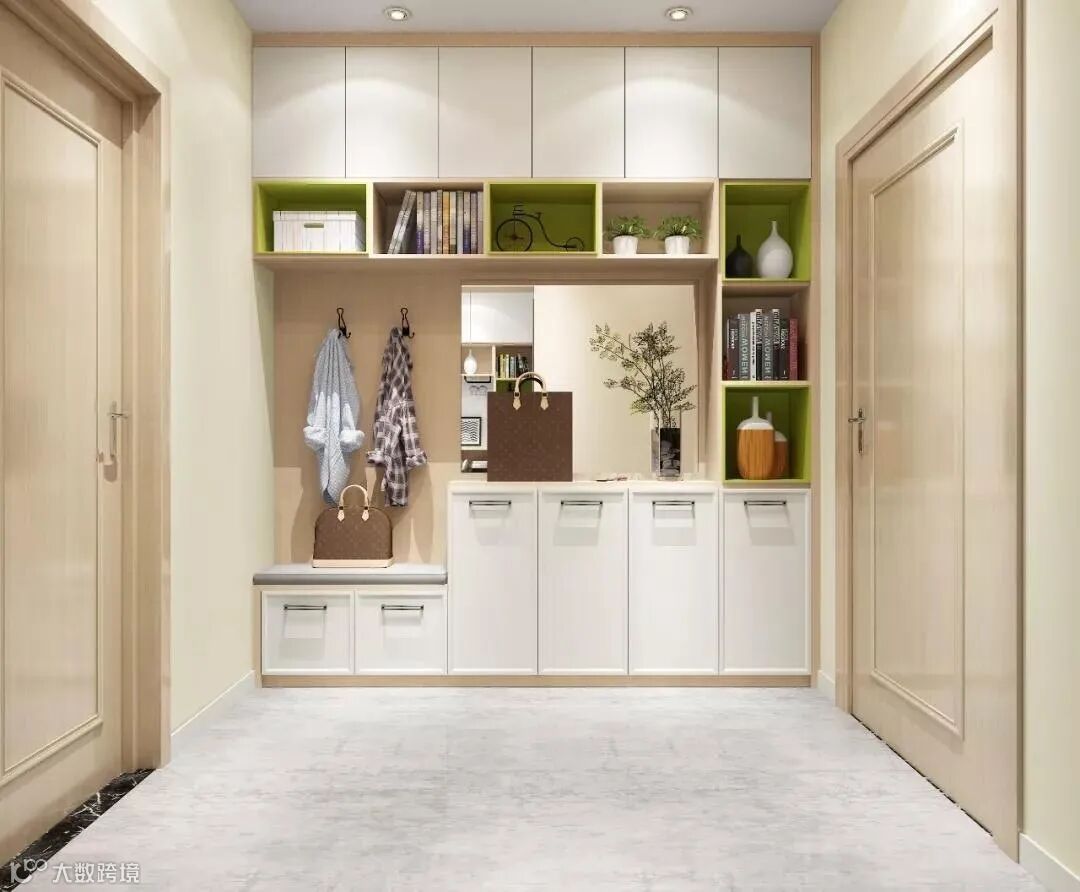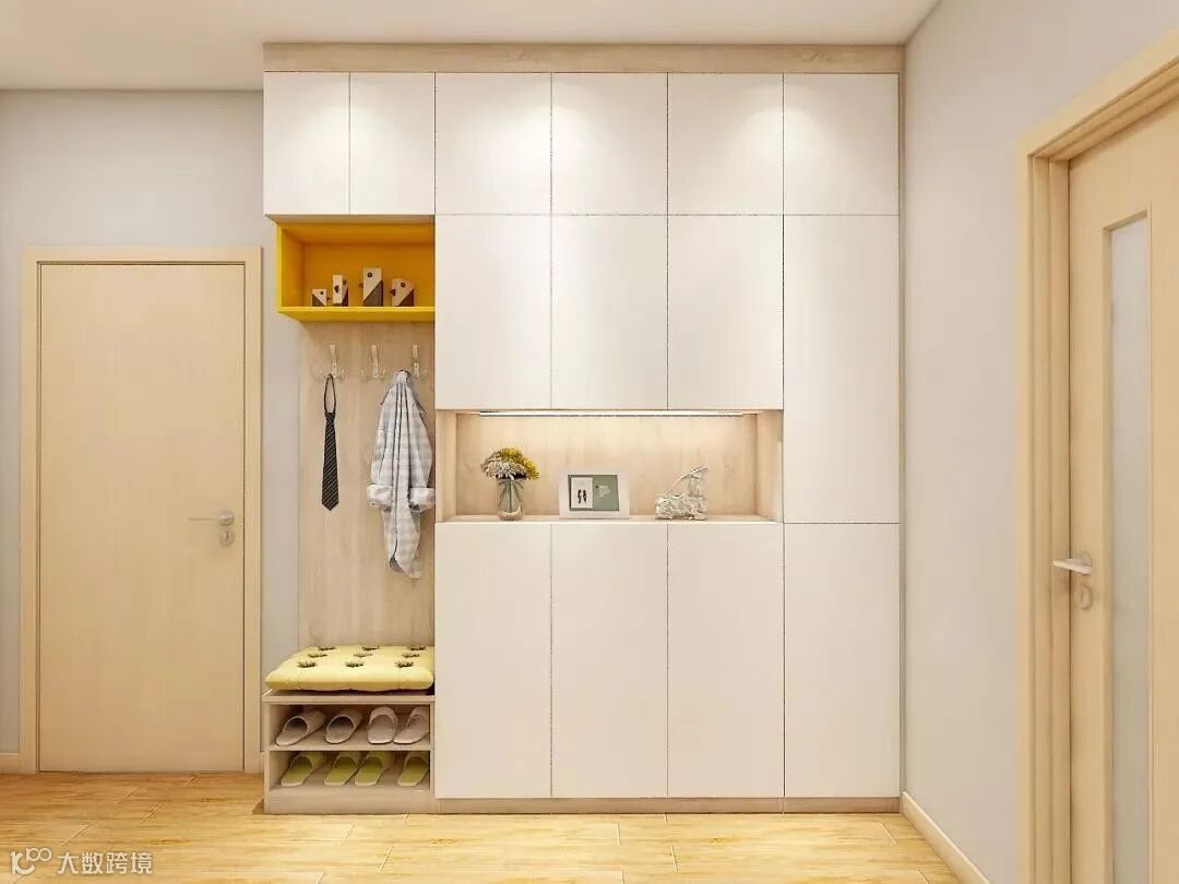 玄关做到顶设计,保证严实无缝,否则柜顶落灰、清洁让人发愁。整体柜美观整洁。底部留空,随手放日常穿的拖鞋和外穿的鞋子。