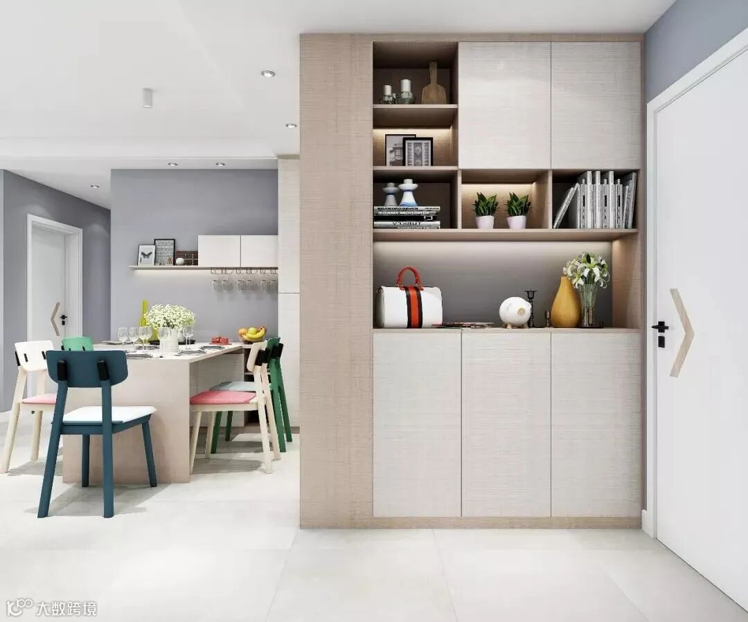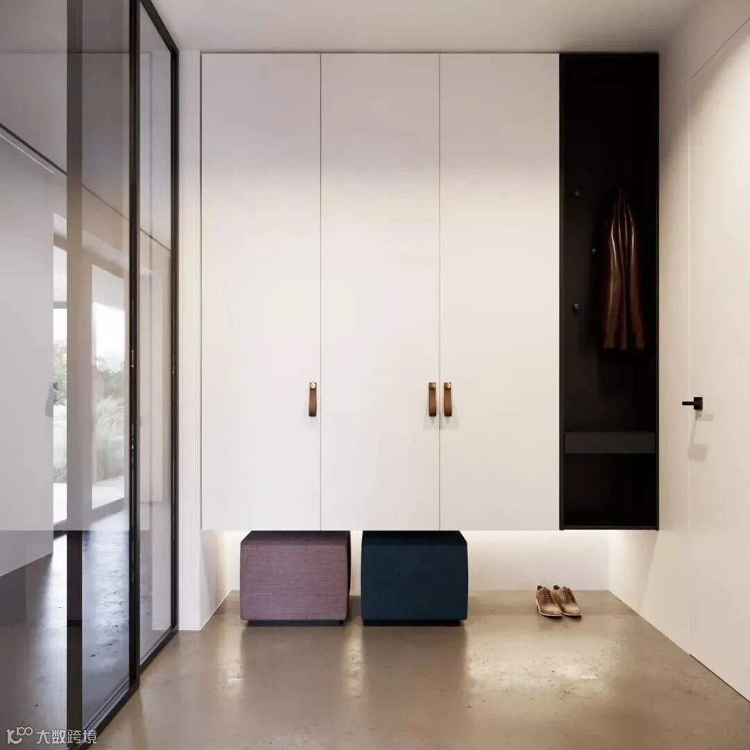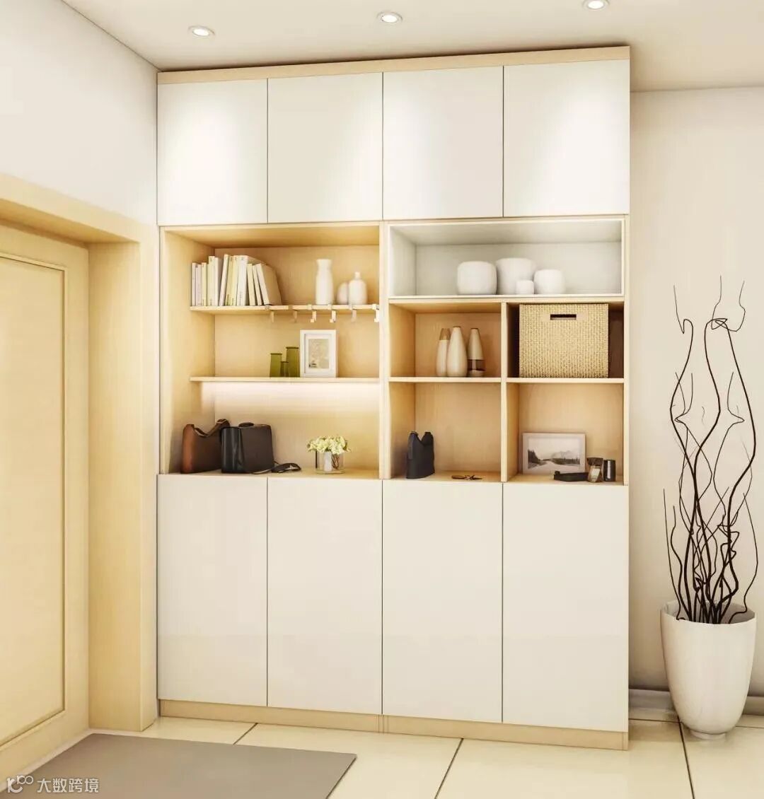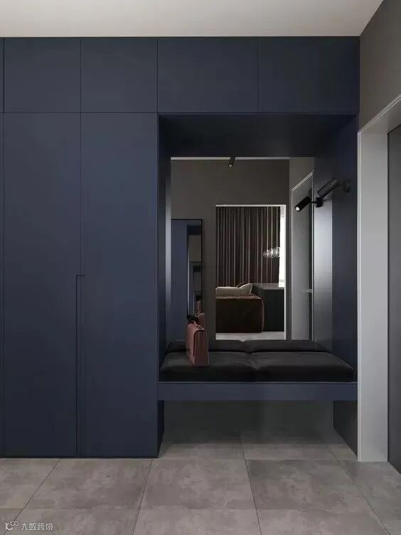 玄关做到顶设计,保证严实无缝,否则柜顶落灰、清洁让人发愁。整体柜美观整洁。底部留空,随手放日常穿的拖鞋和外穿的鞋子。