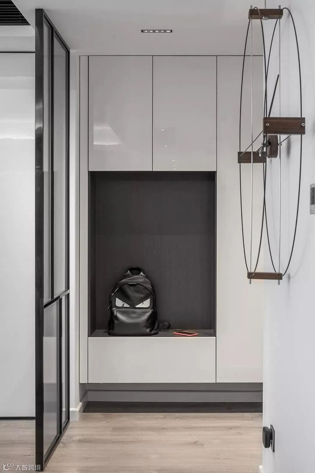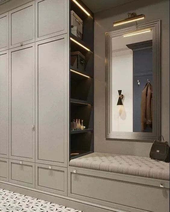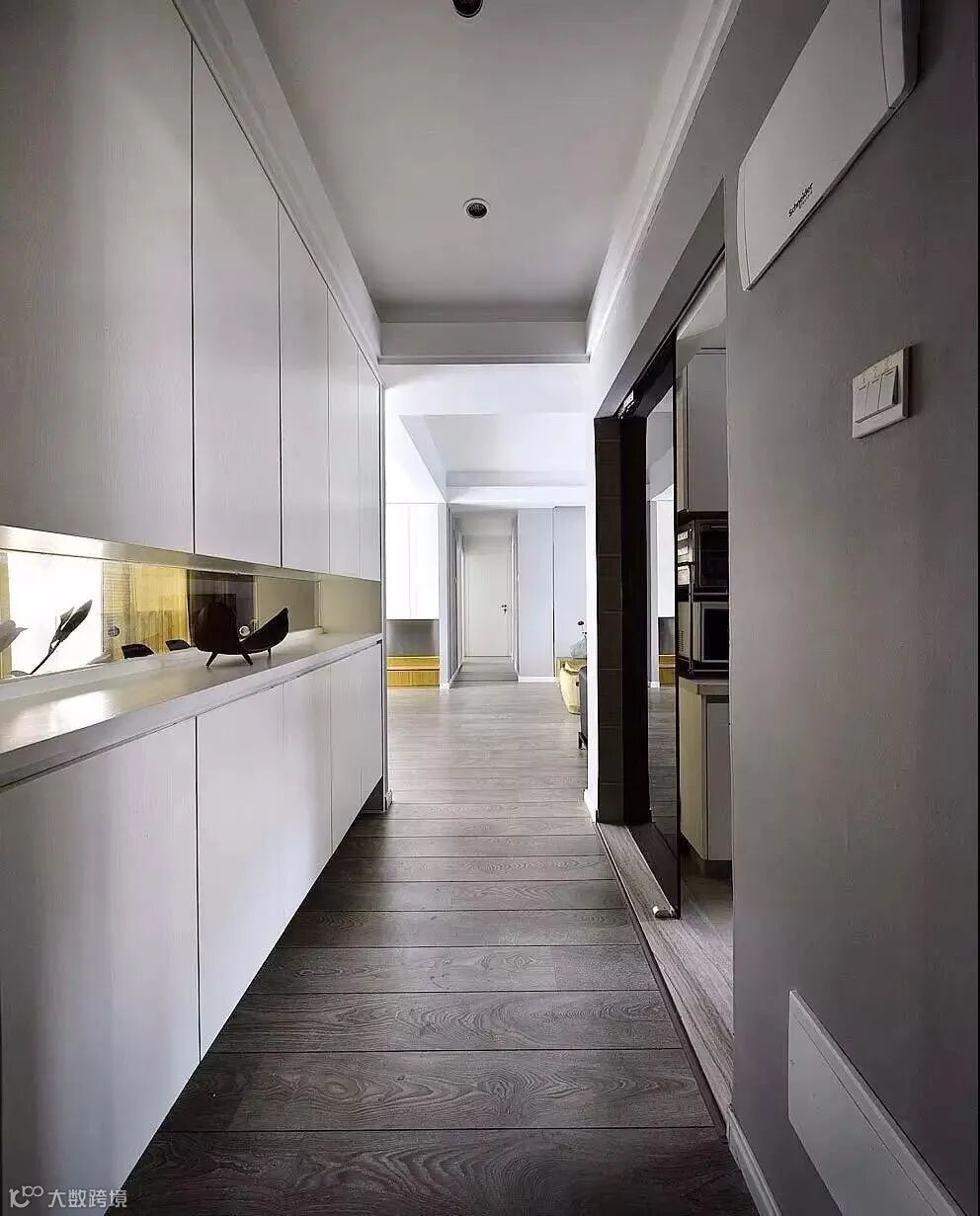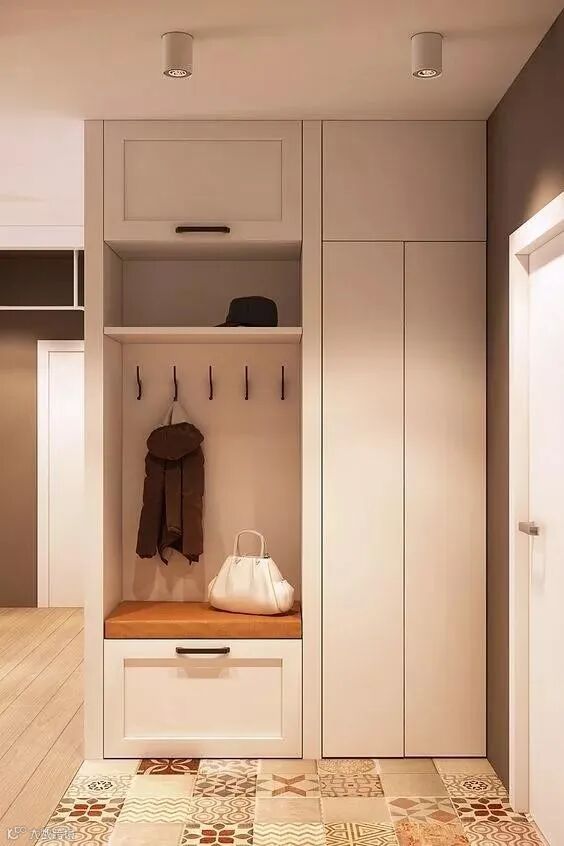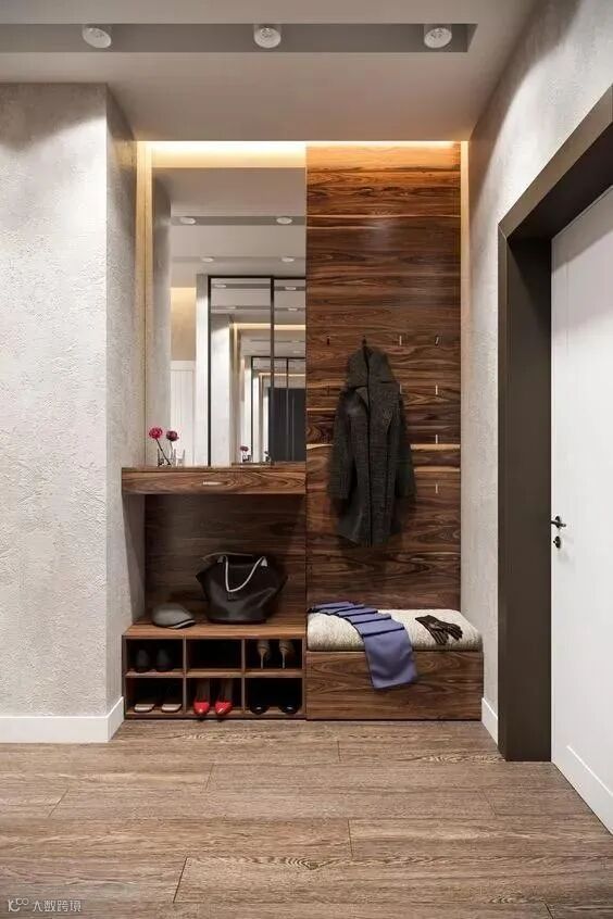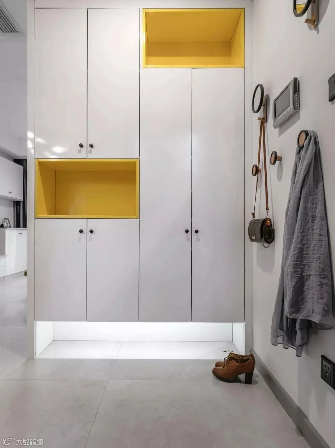玄关做到顶设计,保证严实无缝,否则柜顶落灰、清洁让人发愁。整体柜美观整洁。底部留空,随手放日常穿的拖鞋和外穿的鞋子。