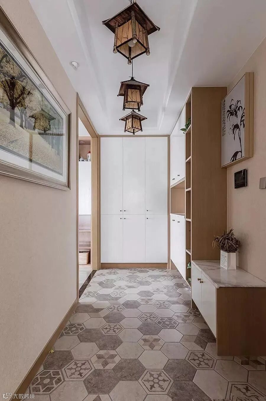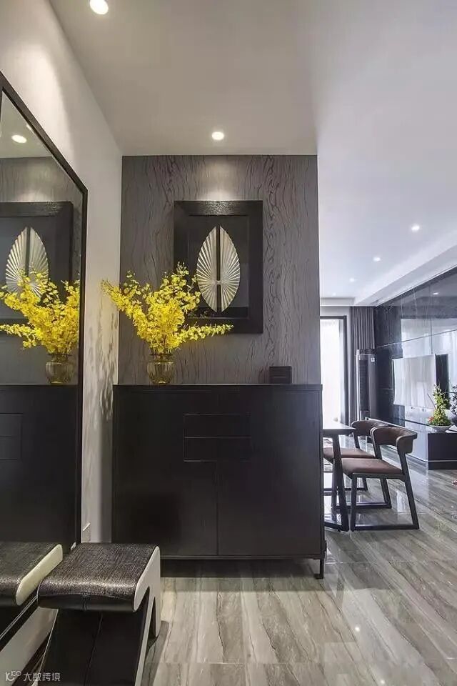 展示区的装饰可以摆放绿植和艺术品,绿植百搭有生机,让入户处有了清爽的感觉;艺术品则是满足了入户处的视觉效果,别致大气。