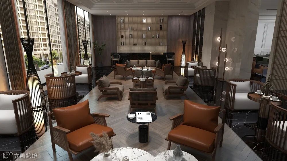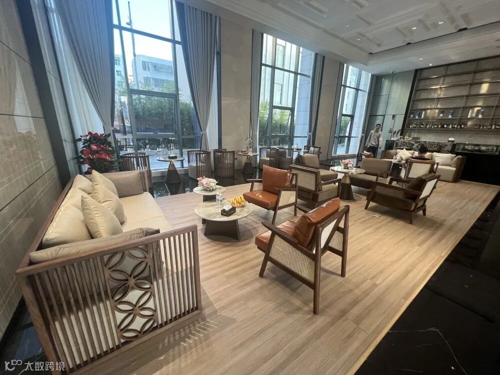 休息区家具带有中式的感觉,在中式的基础上加入了轻奢元素,既有新中式的成熟稳重,又有轻度的奢华,时尚大气。