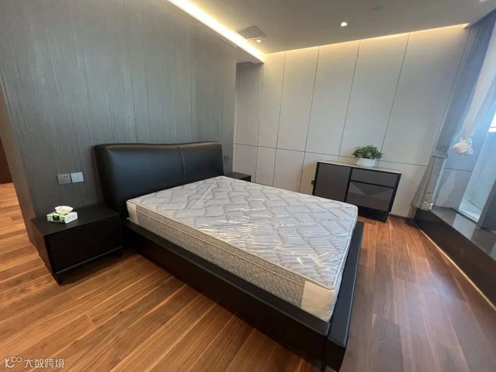 客董事长休息室和客房有明显不同,进口床垫,黑色软床+黑色床头柜,沉稳、成熟、内敛。