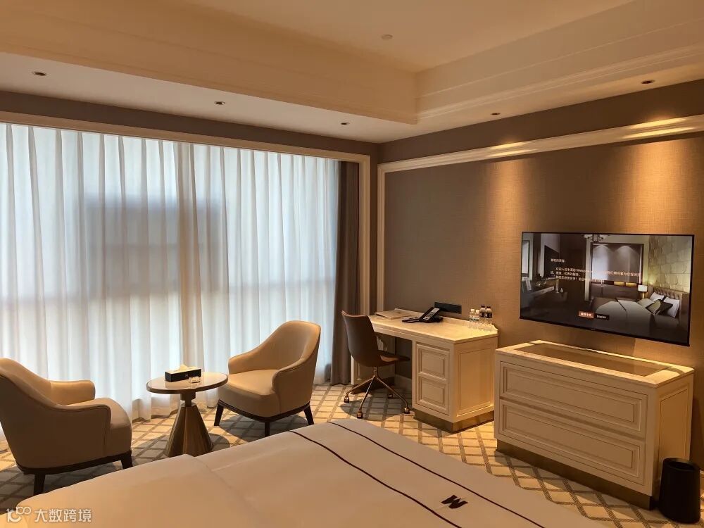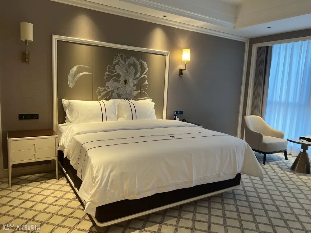 客房软装部分保持了清新素雅的格调,但加入床头柜、休闲椅、电视柜,将整个空间奢华感拉满,让客人步入客房便能体验静怡、精致的入驻体验。