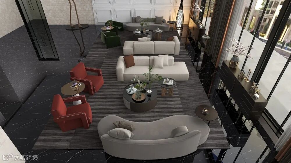 酒店大厅低调奢华,软装搭配避免视觉过渡性堆砌,追求空间维度的丰富变化