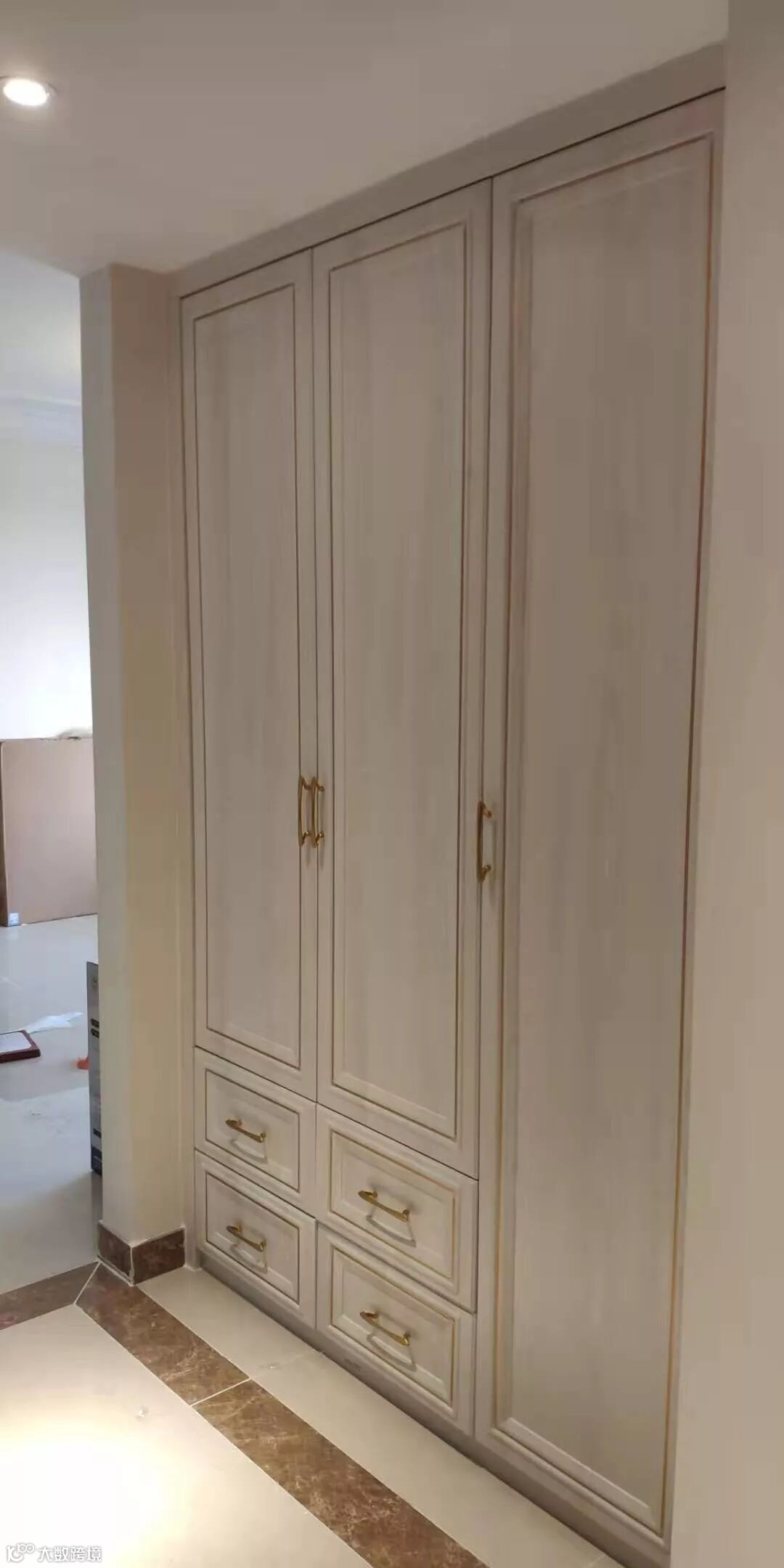 首先是7#03户型的实拍图。空间包括过道的储物柜,主卧的衣帽间。