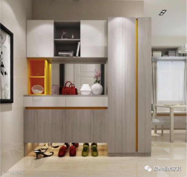 入户柜功能强大,换鞋、展示、收纳无所不能,空间也更大。收纳需求比较大的家庭可以考虑哦。