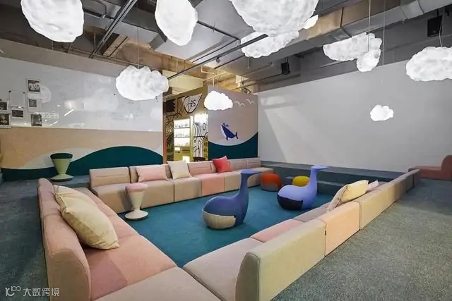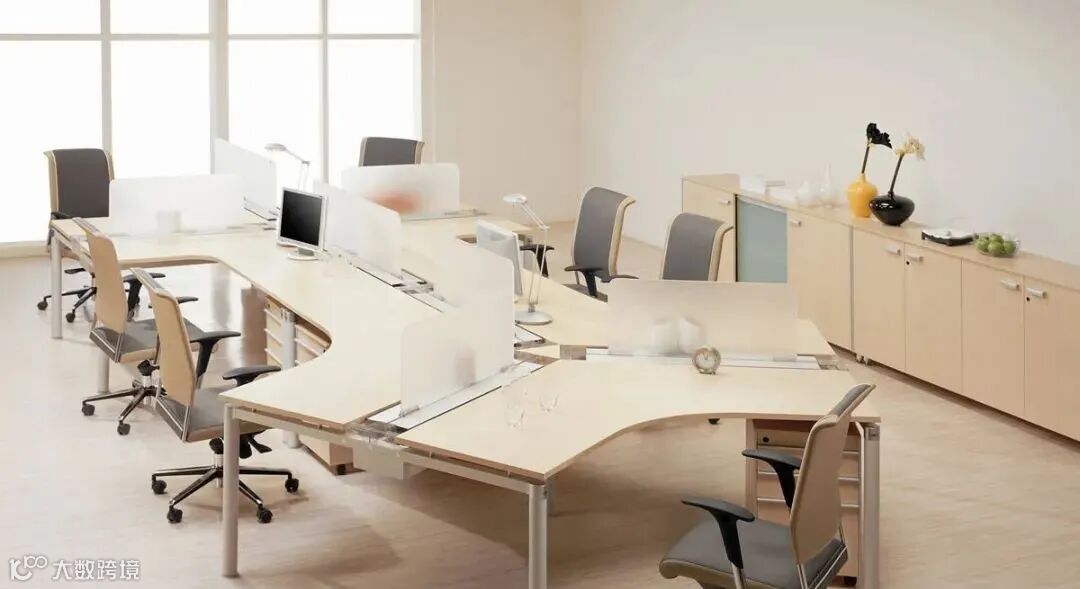 三、员工区的家具选用刨花板为基材定做各式各样的产品,价格便宜造型多样化。