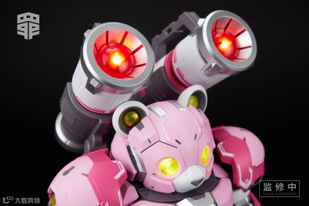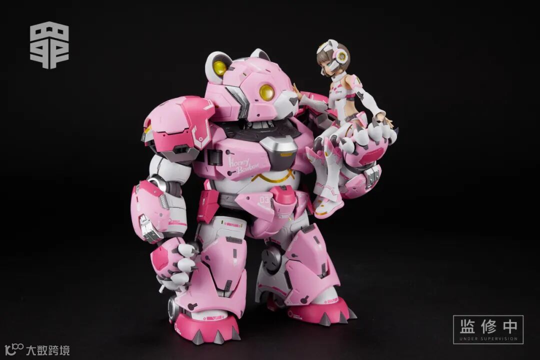 巨熊「憨尼抱抱」配有三组眼部替换件,可以展现出从憨厚到凌厉的不同神情;附有的大角星重炮和守护者骑枪两种武装,配合躯体的可动结构能呈现出自然的战斗姿势。