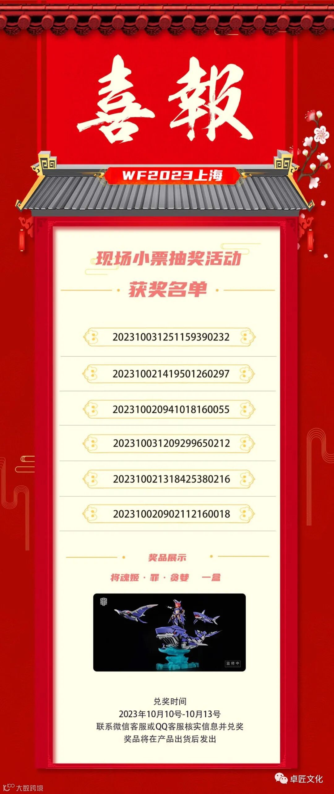 本次抽奖,使用官方系统工具,在所有小票里面,随机抽取6个订单号!结果公正有效!请中奖的粉丝宝宝于2023年10月10日-10月13日私信微信或QQ客服核实信息并兑奖,过期视为自动放弃!