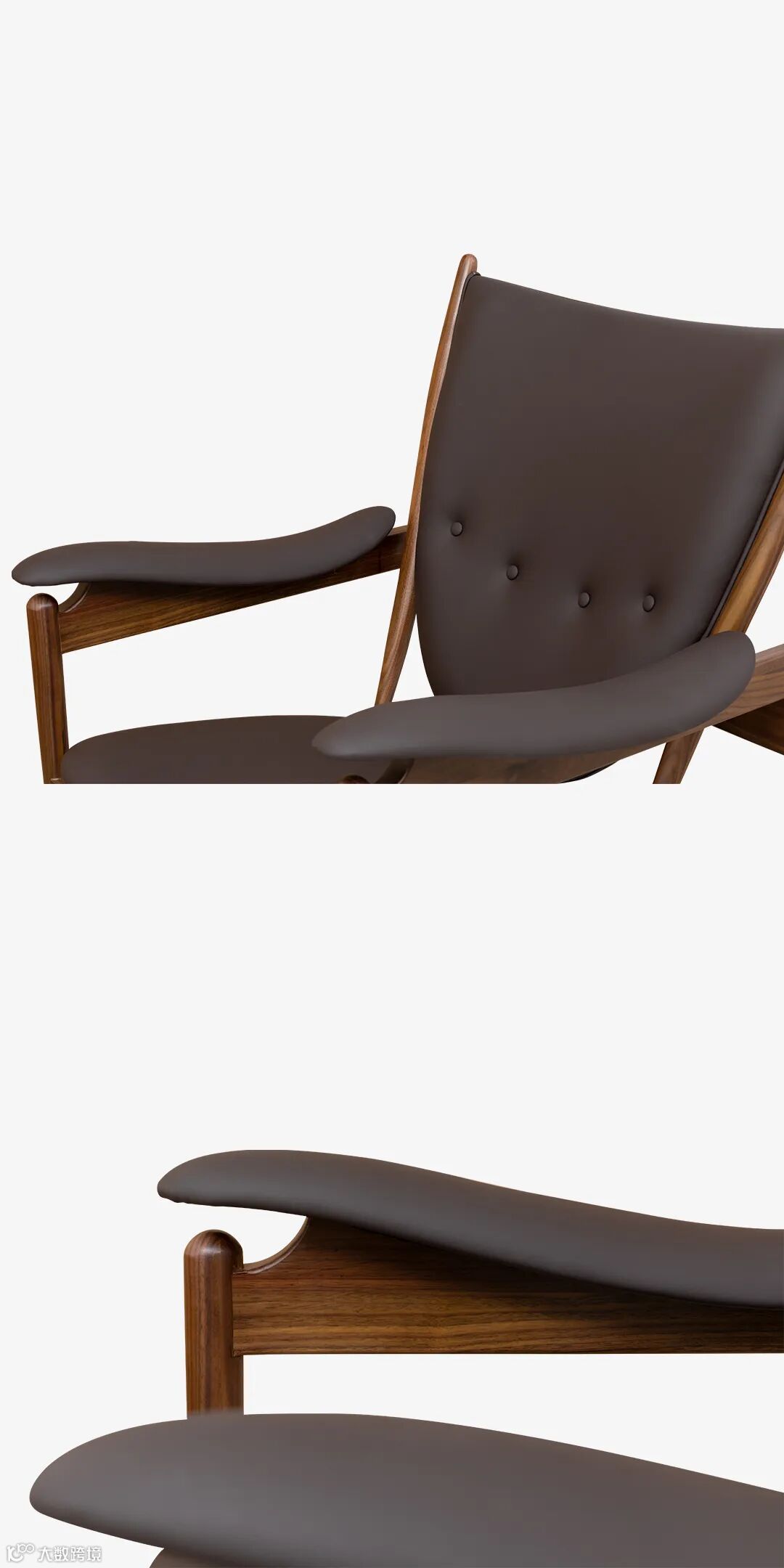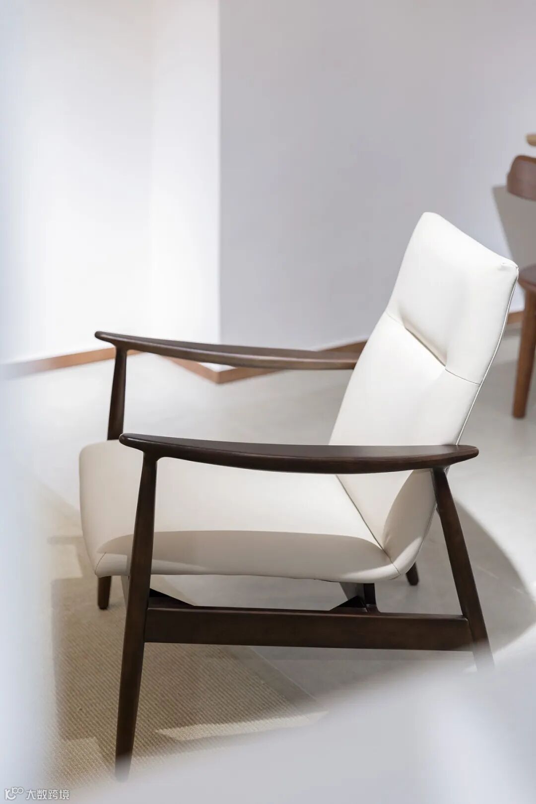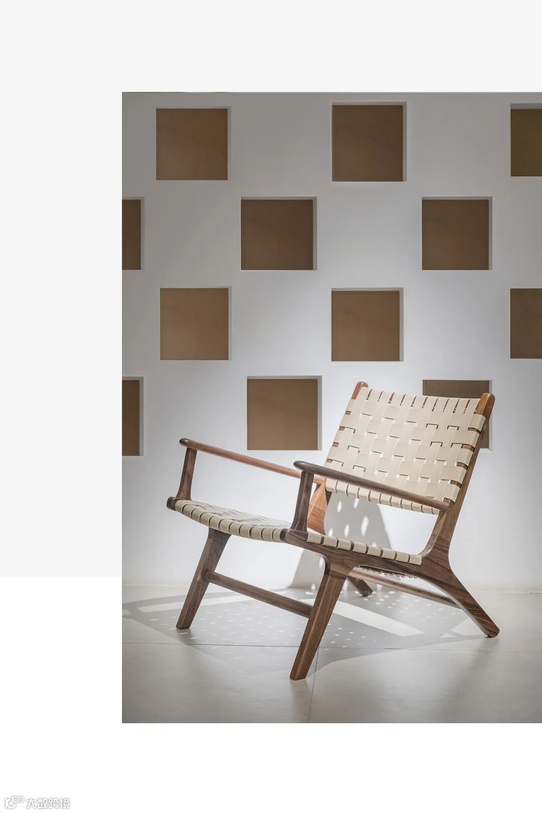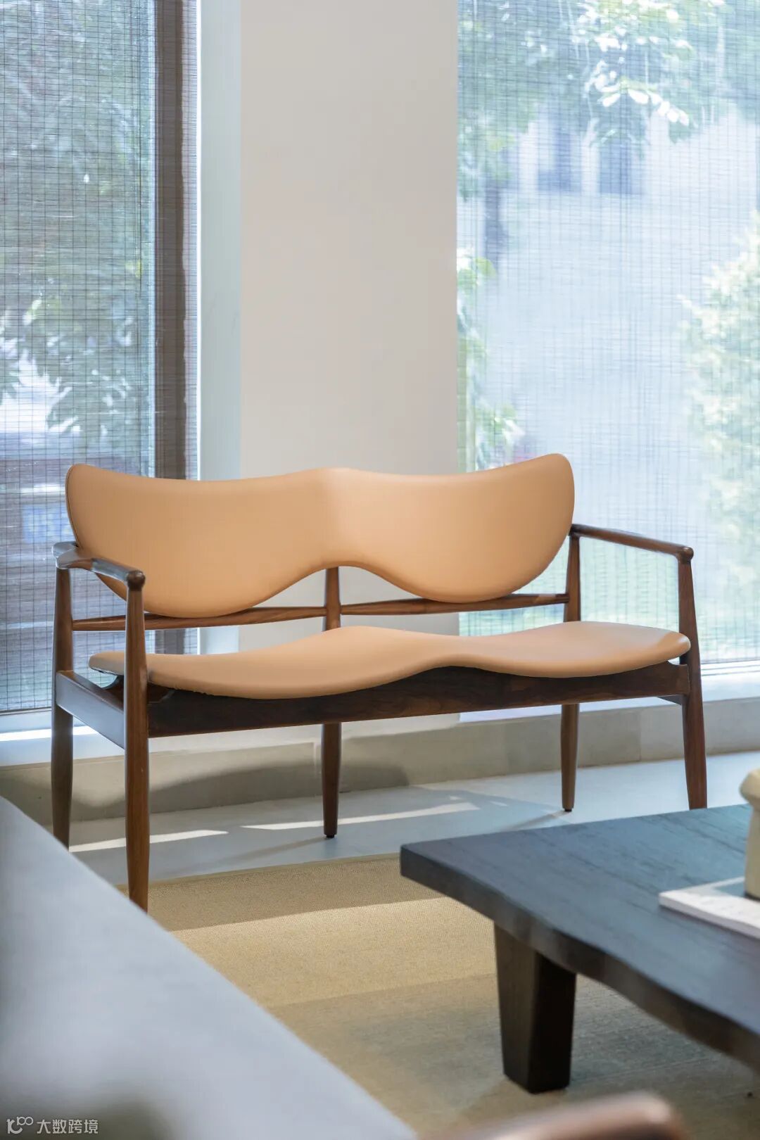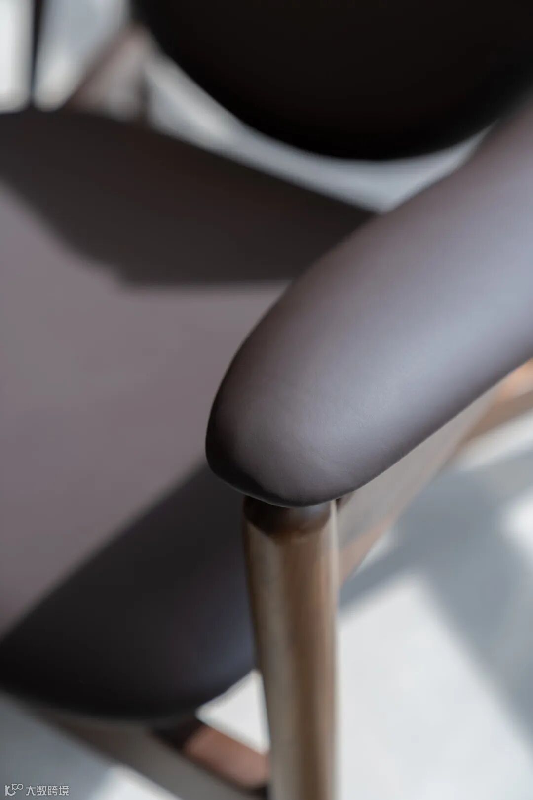 用料上,黑胡桃木搭配马鞍皮,高雅中带着自然和轻盈的感觉,座面采用2mm厚的马鞍革编织,保证了韧性和透气性,结构简单又稳定。
