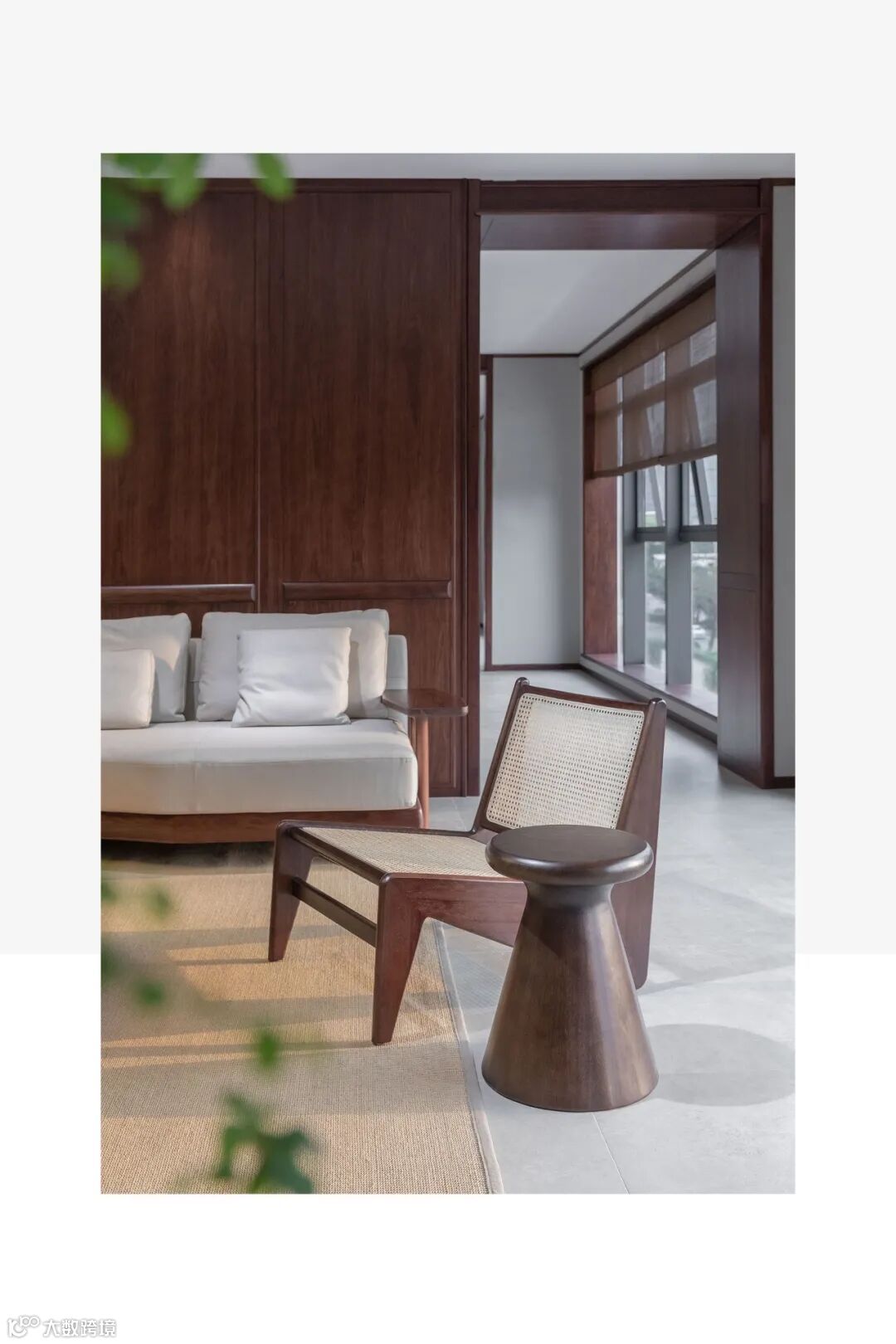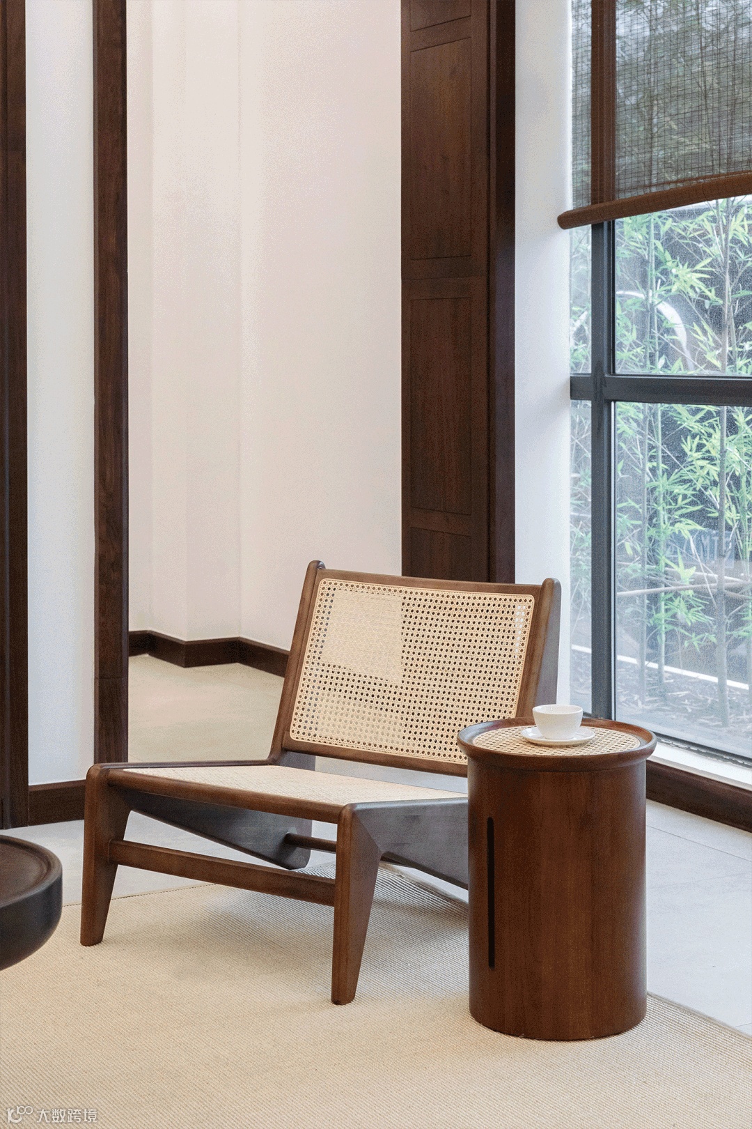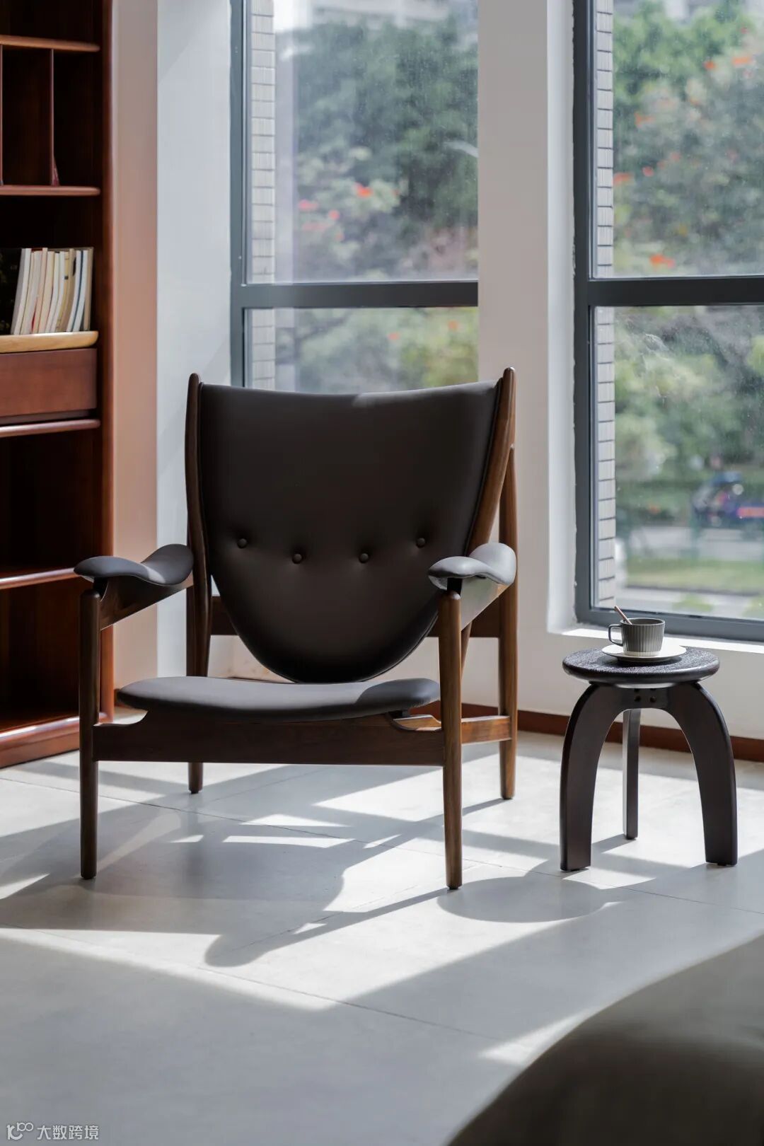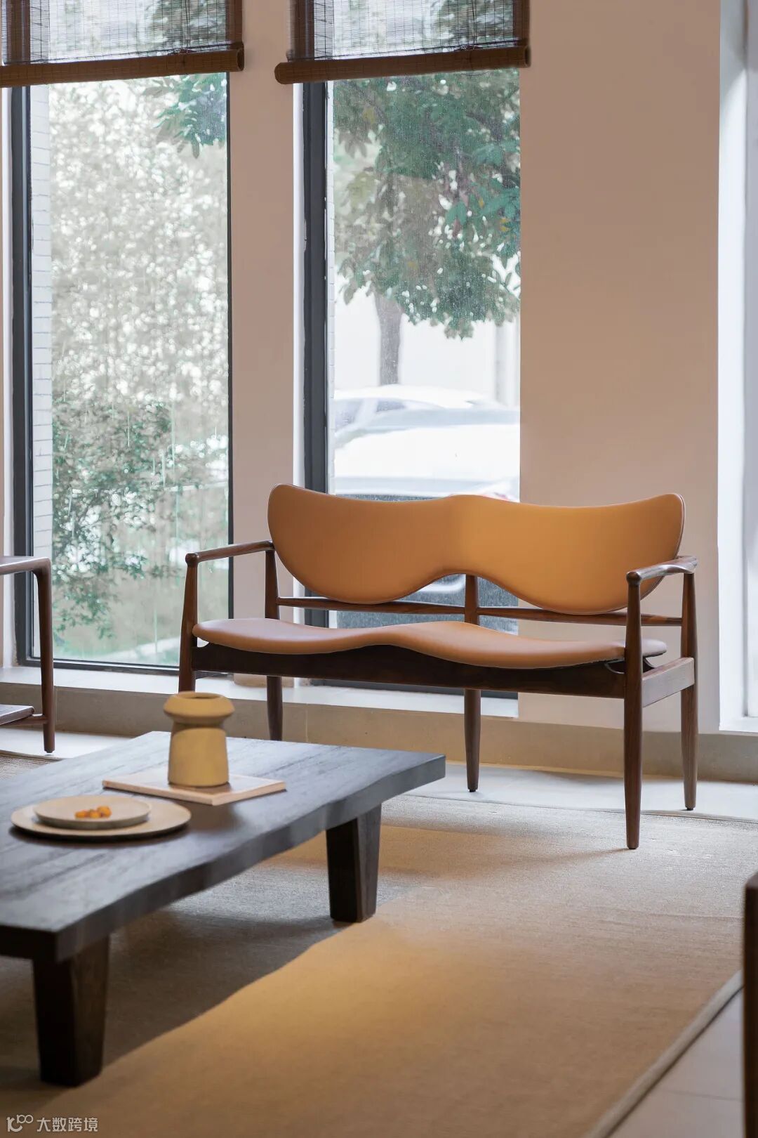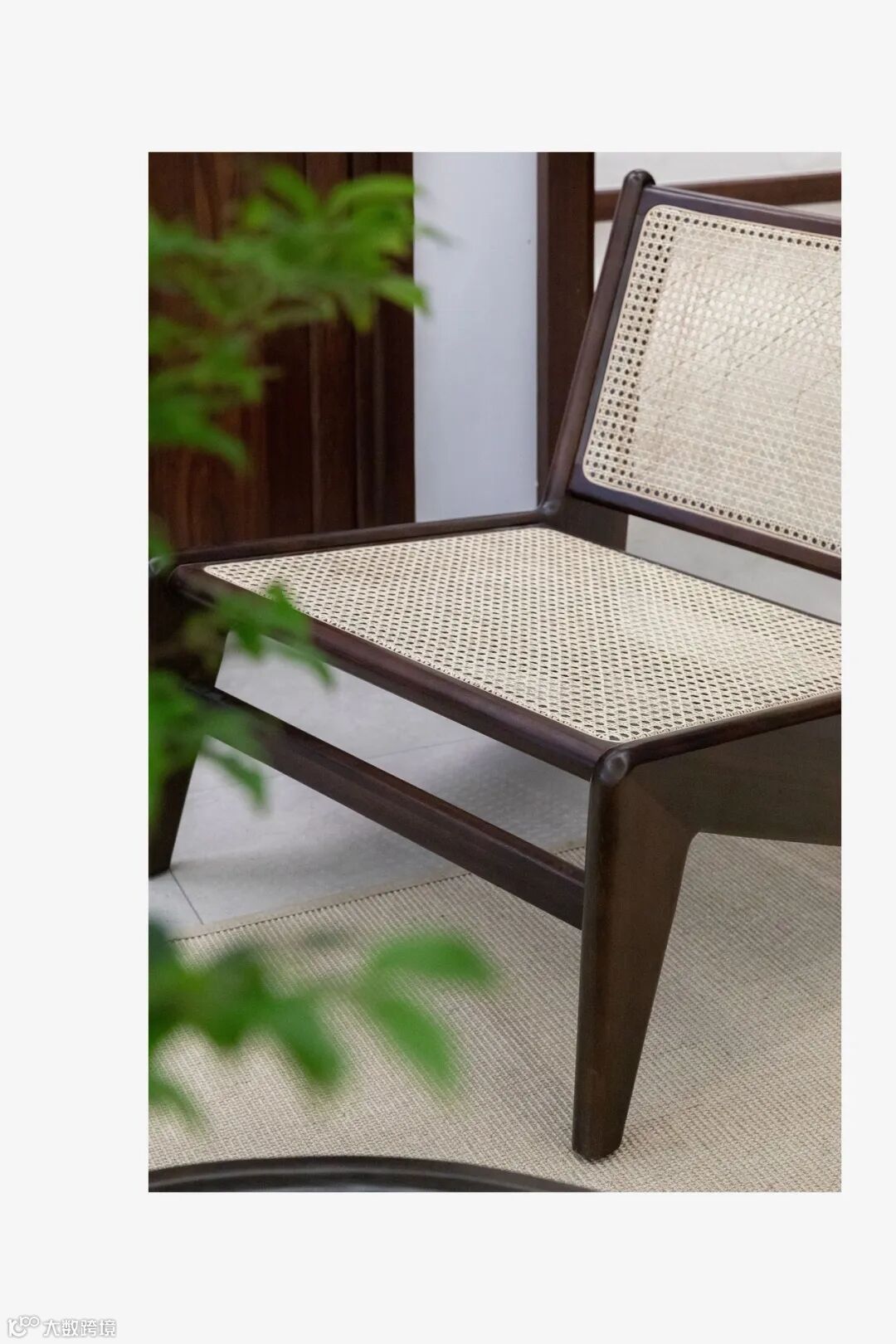 用料上,黑胡桃木搭配马鞍皮,高雅中带着自然和轻盈的感觉,座面采用2mm厚的马鞍革编织,保证了韧性和透气性,结构简单又稳定。