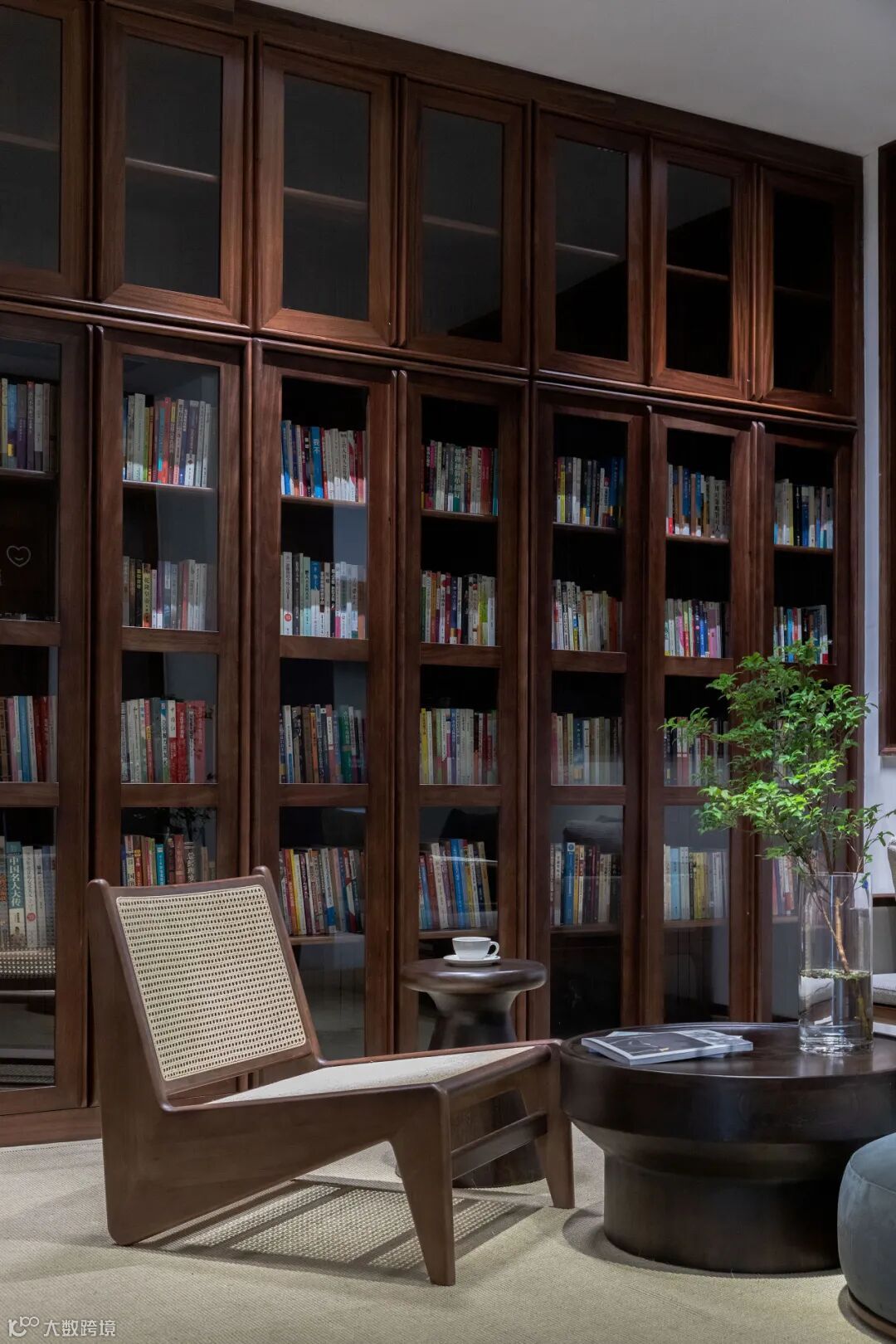非常适合搭配休闲一点的沙发或者加一个小边几摆在卧室的一角。强烈的原始感与张放的线条,用在黑胡桃木材质上,给人带来很强的视觉震撼。