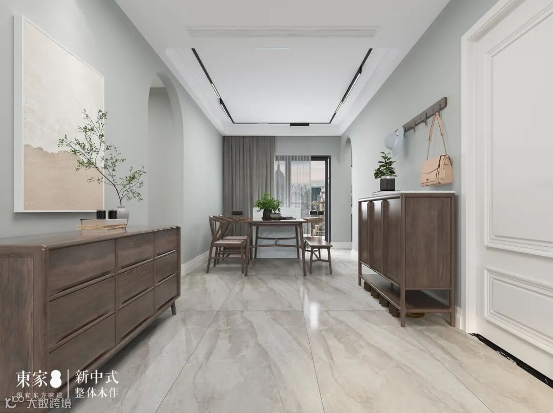 散发着东方意蕴的新中式,与火遍时尚圈的莫兰迪,二者看起来像是两条行走在设计前沿的平行线,但东家设计师却通过“东家·黑胡桃系列”,找到了微妙的交点。主打轻奢时尚的“东家·黑胡桃”,大胆地运用撞色元素,为新中式空间带来耳目一新的体验。