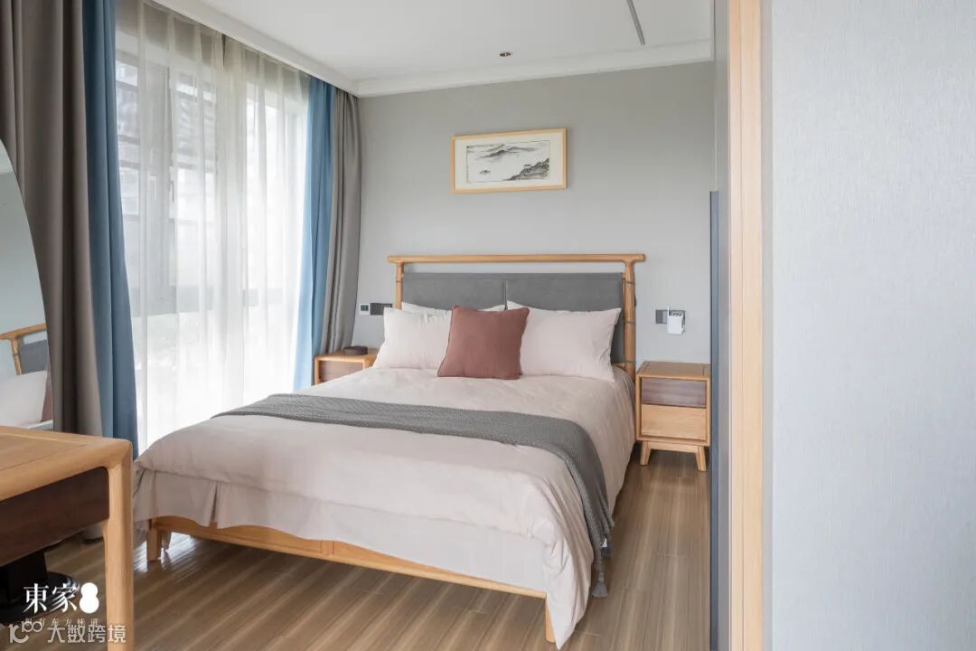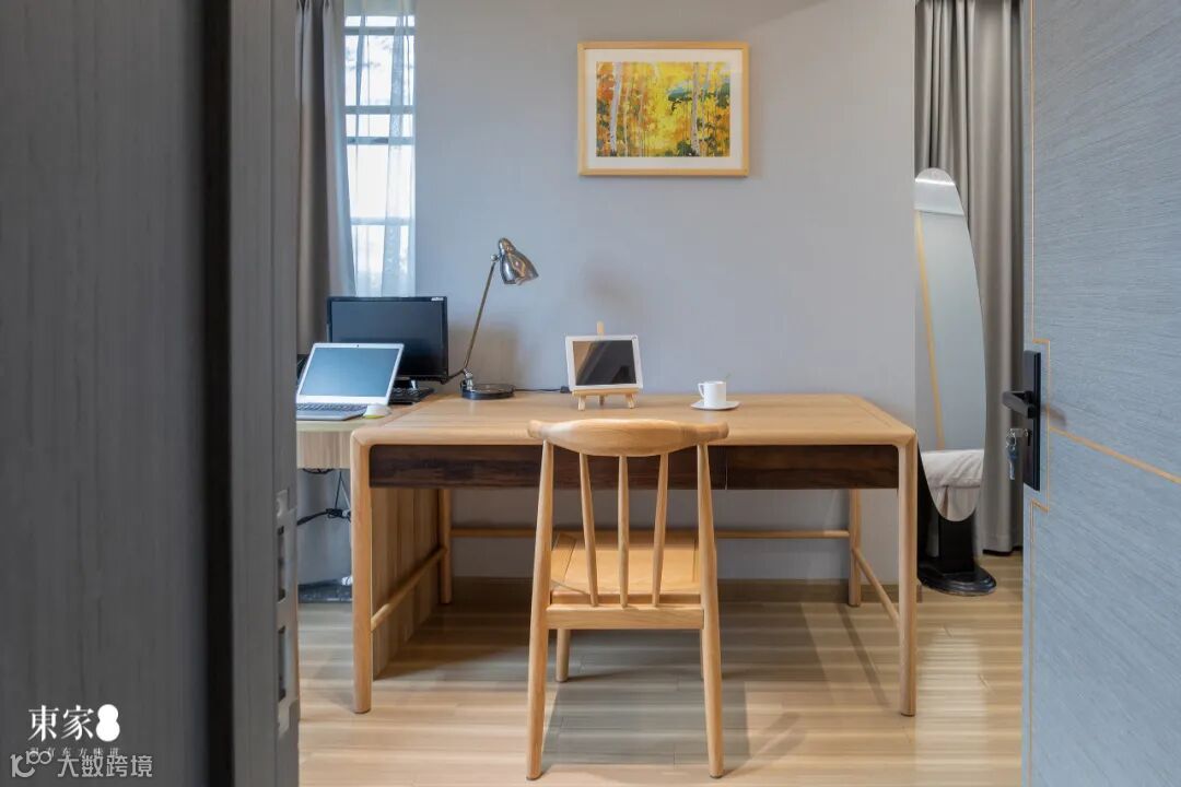 次卧的布局满足休息、绘画、阅读、演奏等生活娱乐需求,和谐统一的色调与布局,充满原木气息的纯朴空间,提供了一个静谧清幽的作息与学习环境。